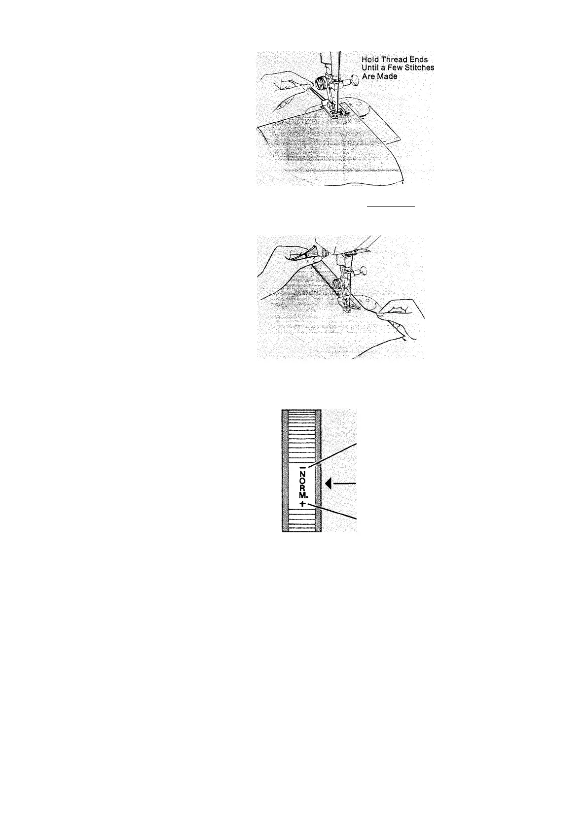 back of machine. Hold thread ends and posi
