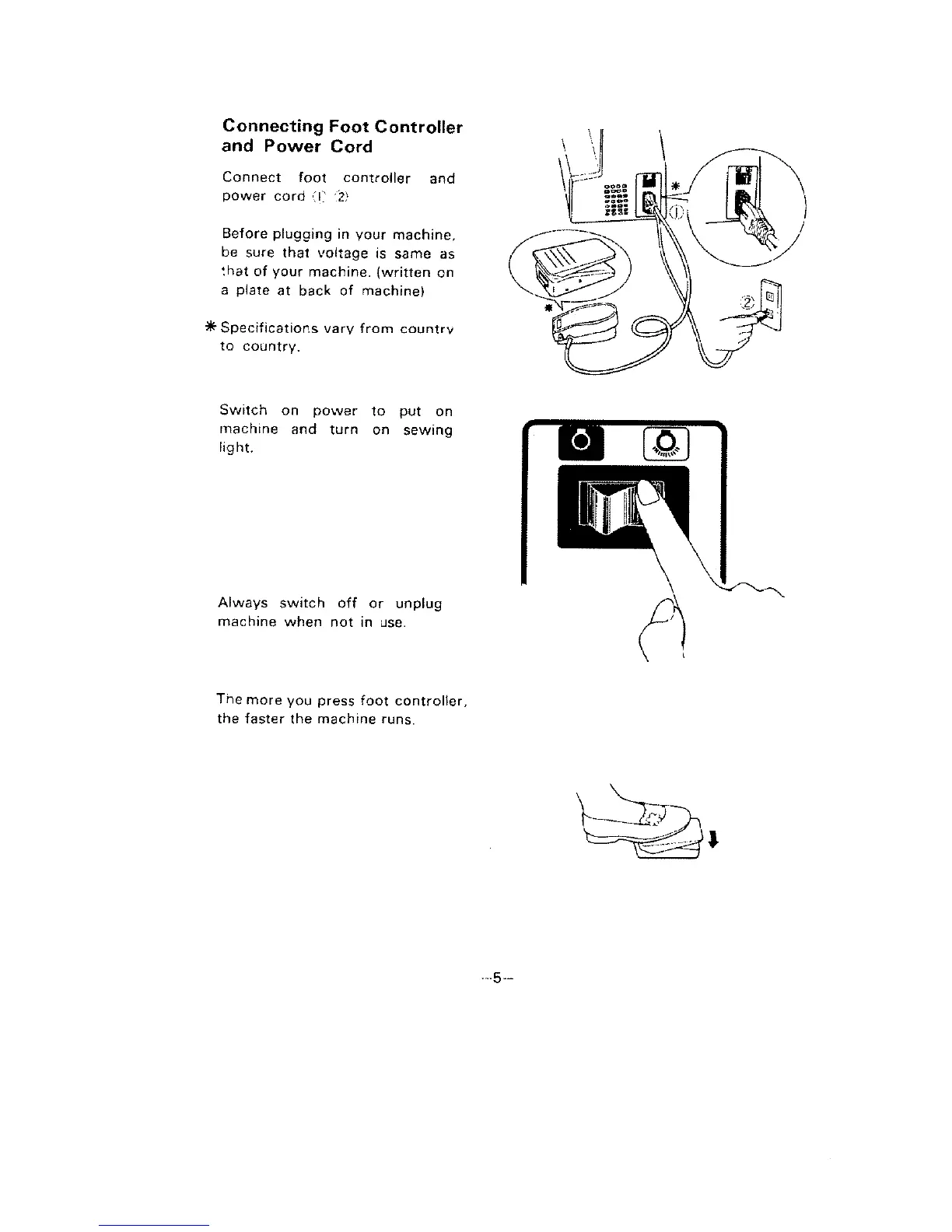 Singer 1077 - Connecting Foot Controller and Power Cord