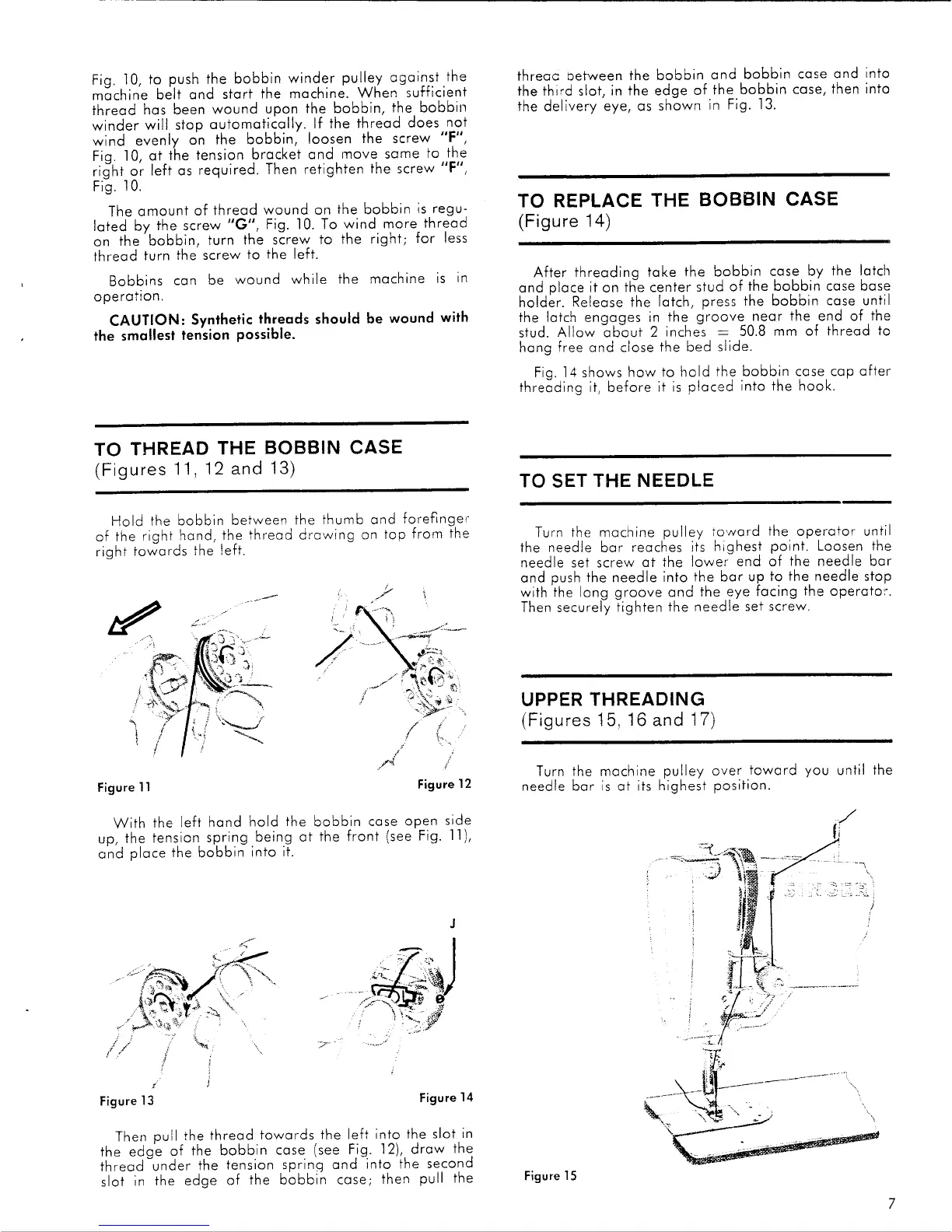 Singer 107G201 - Threading the Bobbin Case; Bobbin Placement in Case; Thread Path Through Case; Replacing the Bobbin Case