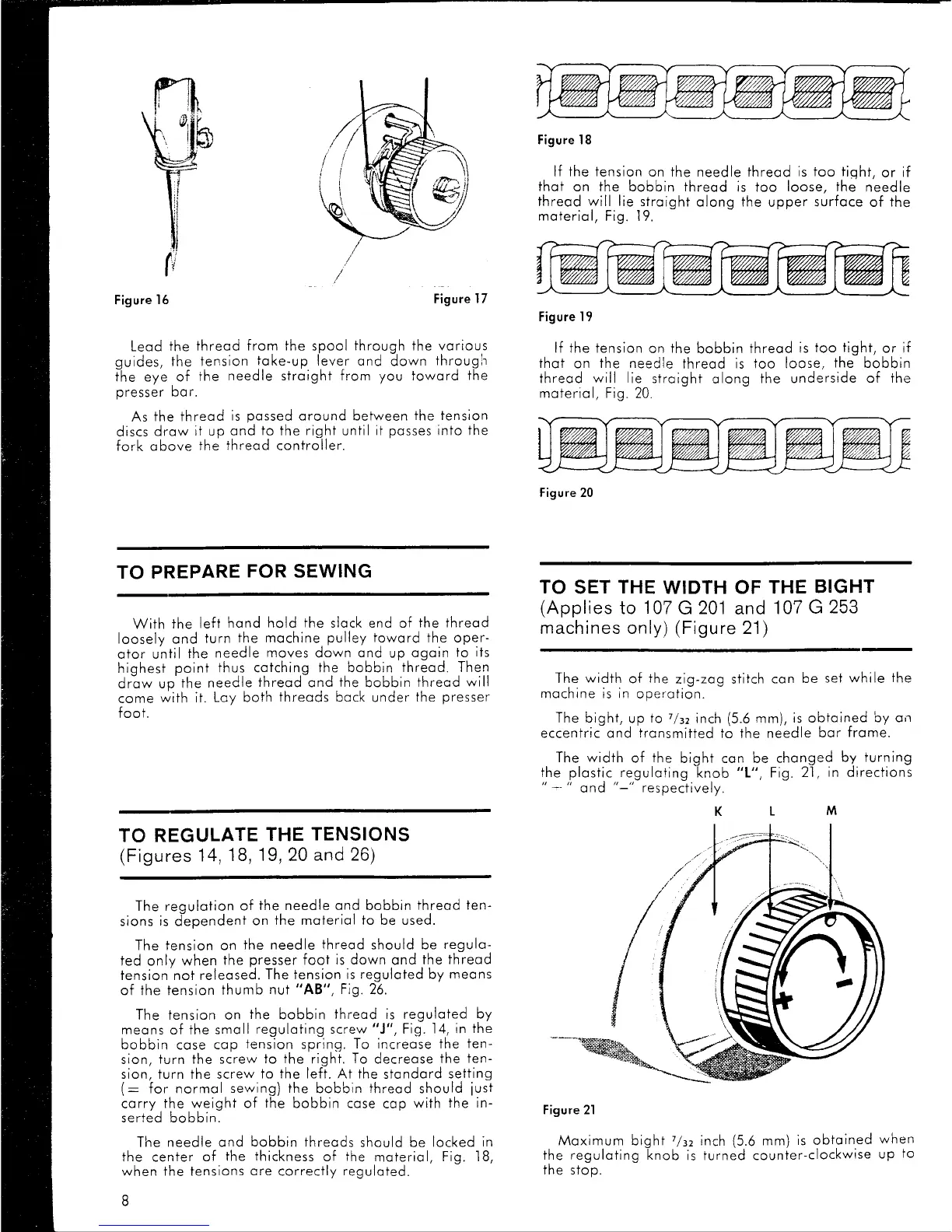 Singer 107G201 - Preparing for Sewing; Catching the Bobbin Thread; Regulating Thread Tensions; Tension Adjustment Factors