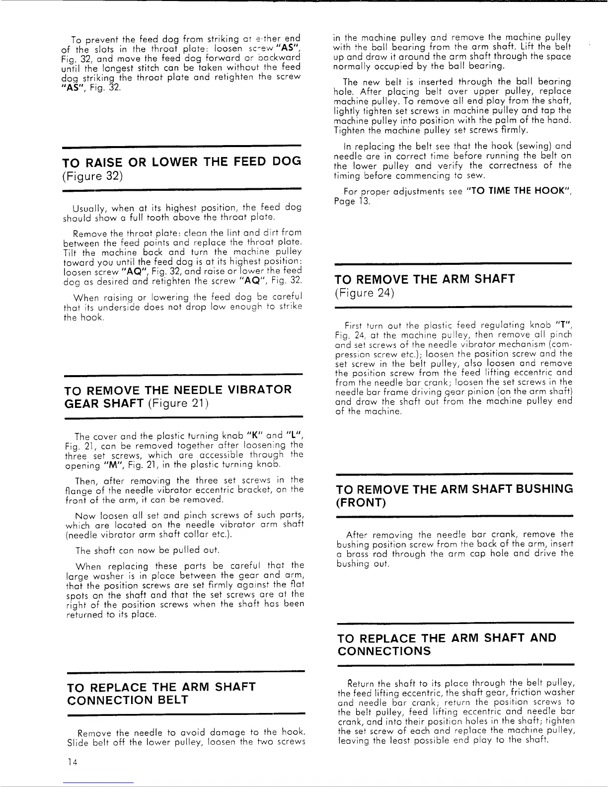 Singer 107G201 - Adjusting Feed Dog Height; Feed Dog Position Check; Feed Dog Height Adjustment; Feed Dog Clearance Caution