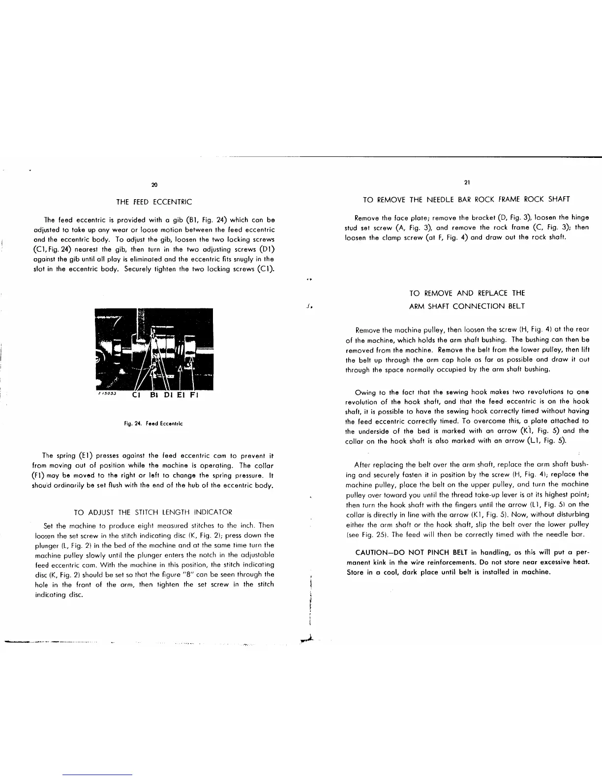 Singer 111W152 - The Feed Eccentric; To Adjust the Stitch Length Indicator; To Remove the Needle Bar Rock Frame Rock Shaft; To Remove and Replace the Arm Shaft Connection Belt