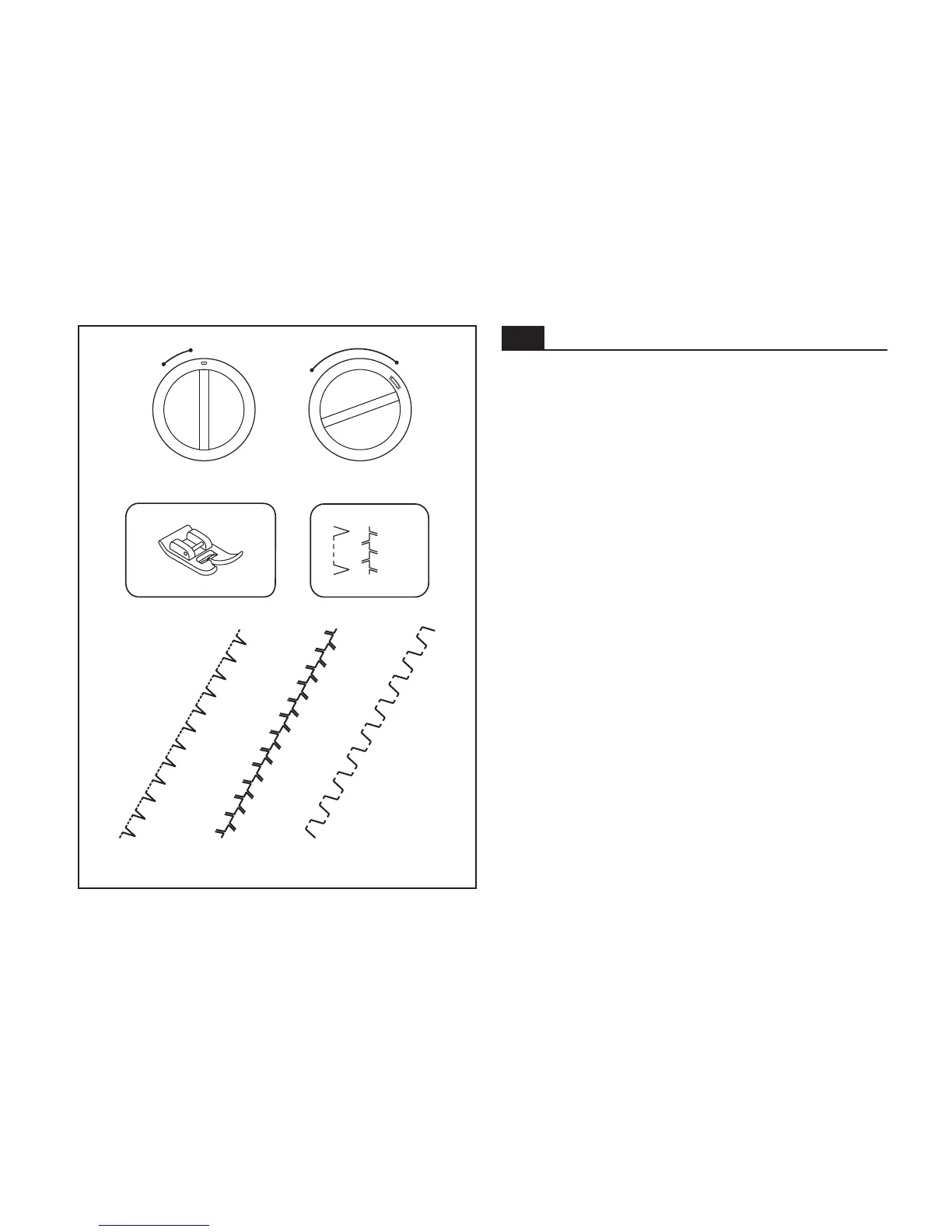 Turn the switch width dial and stitch length dial to suit the fabric