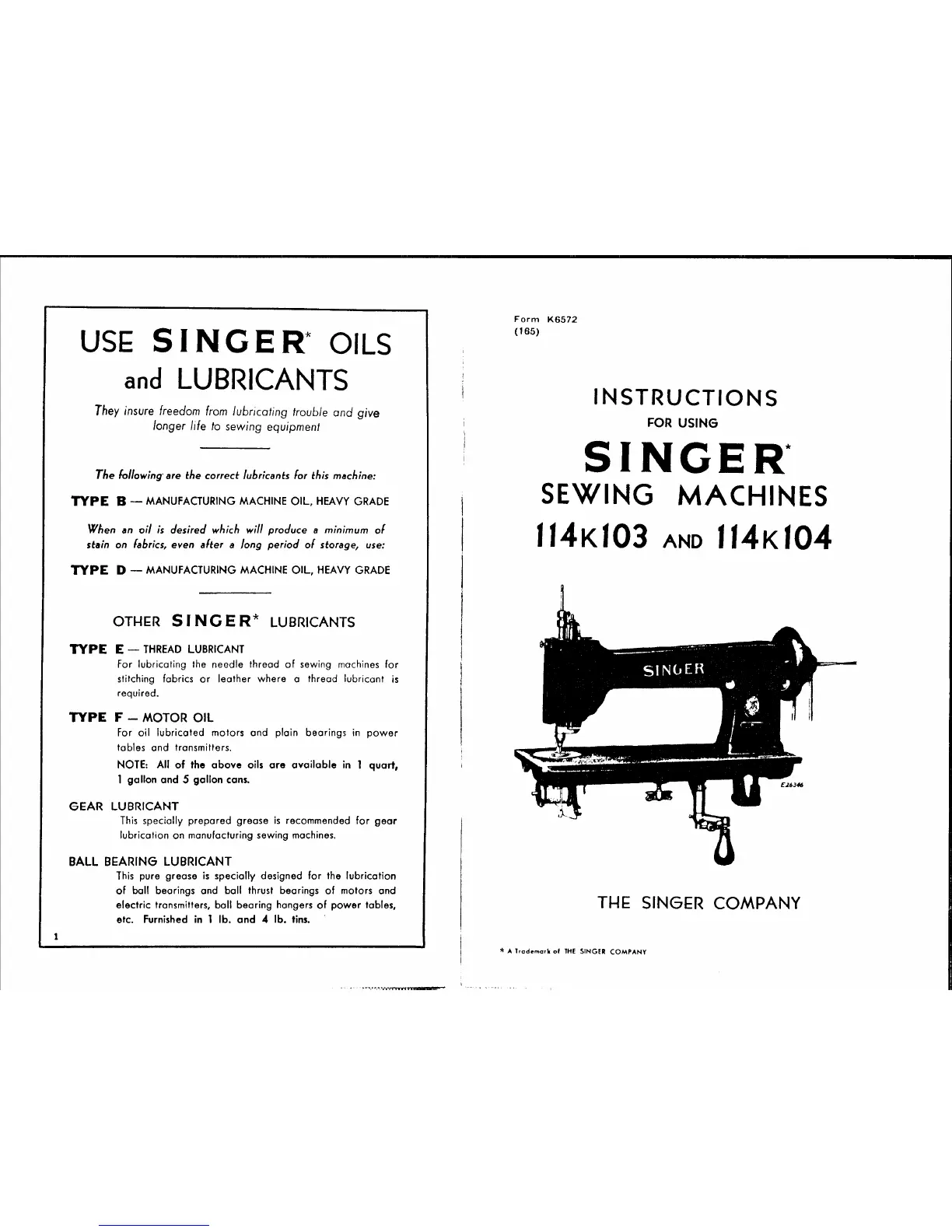 Singer 114K103 - USE SINGER OILS and LUBRICANTS