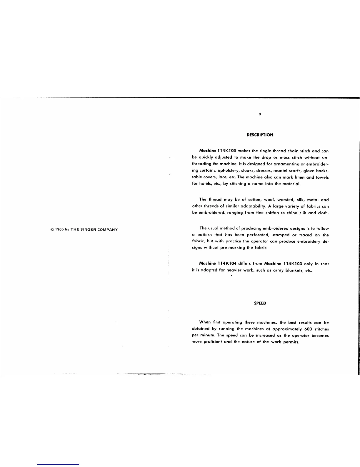 Singer 114K103 - DESCRIPTION; SPEED