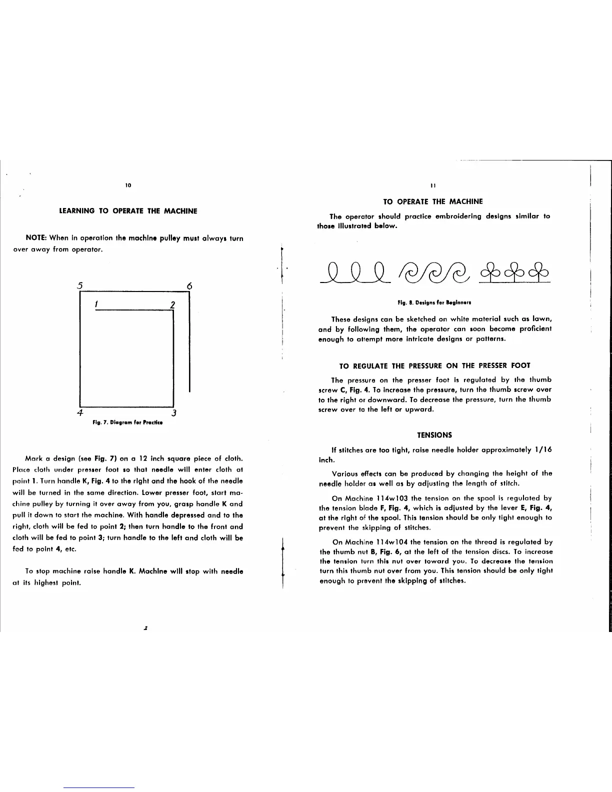 Singer 114W103 - Learning to Operate the Machine; To Operate the Machine; Tensions; To Regulate the Pressure on the Presser Foot