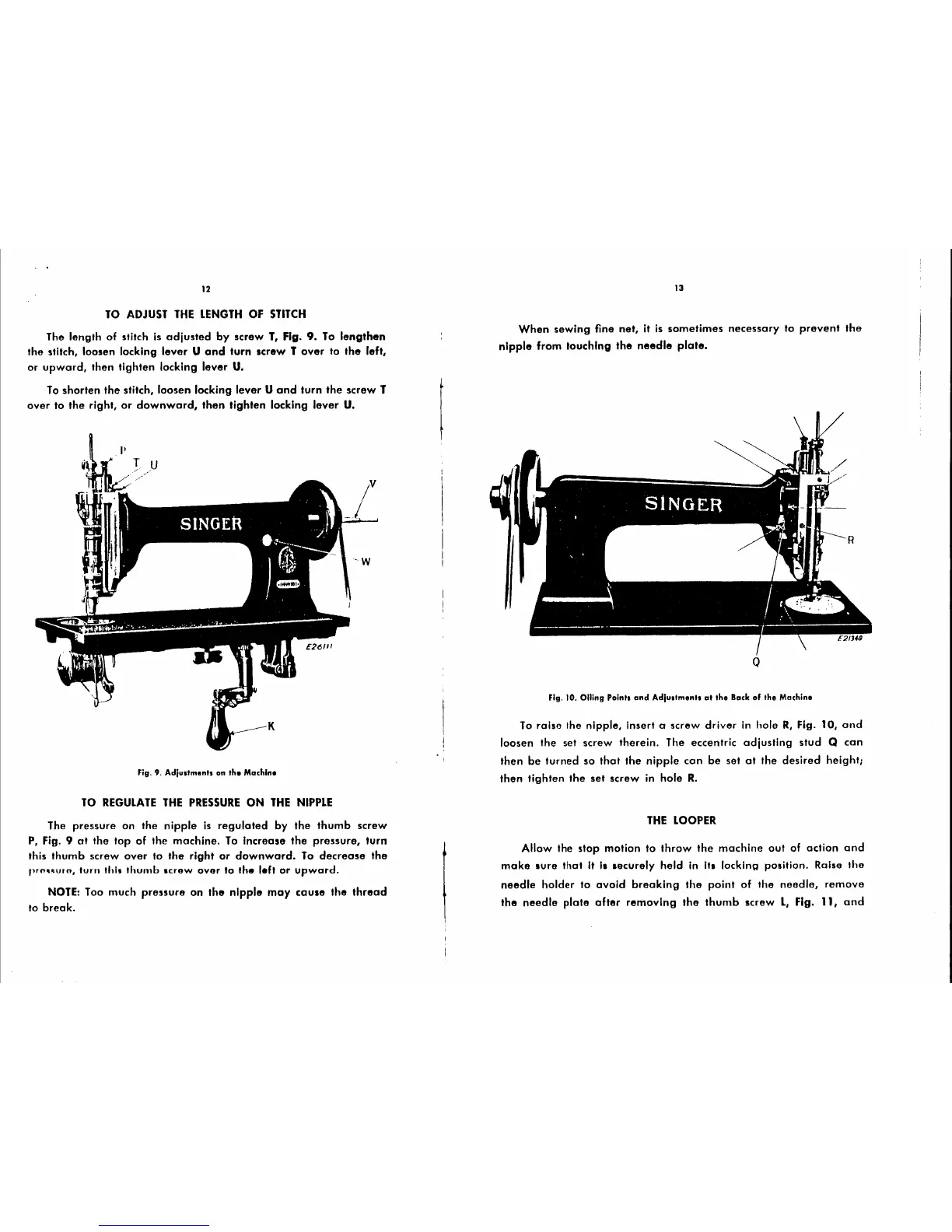 Singer 114W103 - MACHINE ADJUSTMENTS; TO ADJUST THE LENGTH OF STITCH; TO REGULATE THE PRESSURE ON THE NIPPLE