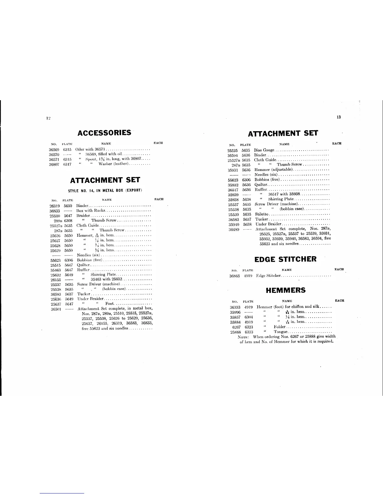 Singer 115-1 - Accessories; Attachment Set; Edge Stitcher; Hemmers