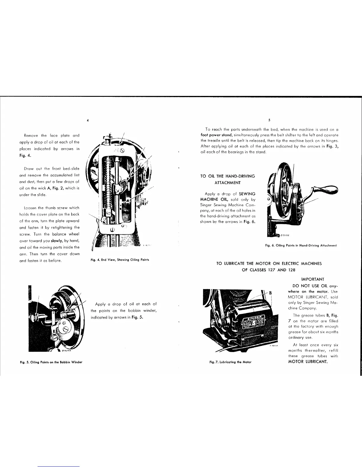 Singer 127 - Oiling Hand-Driving Attachment; Lubricating Electric Machine Motor