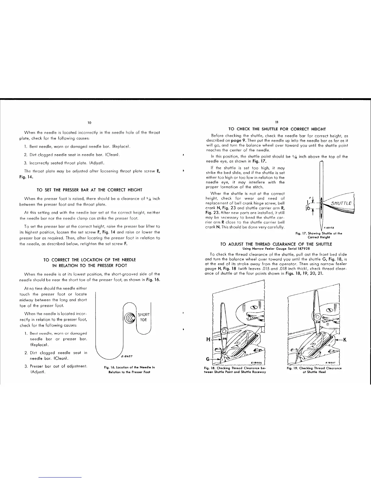 Singer 127 - SETTING PRESSER BAR HEIGHT; NEEDLE LOCATION VS. PRESSER FOOT; CHECKING SHUTTLE HEIGHT