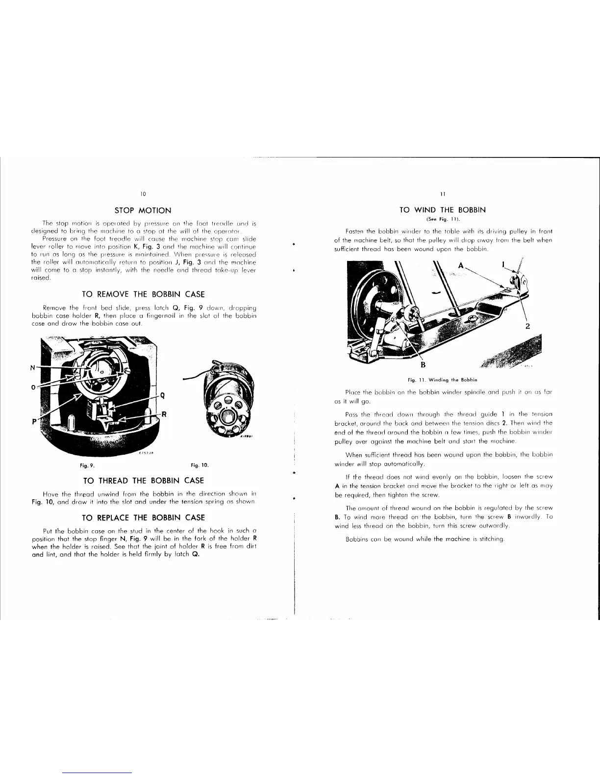 Singer 12W - Stop Motion and Bobbin Operations; Stop Motion Functionality; Bobbin Case Handling; Winding the Bobbin
