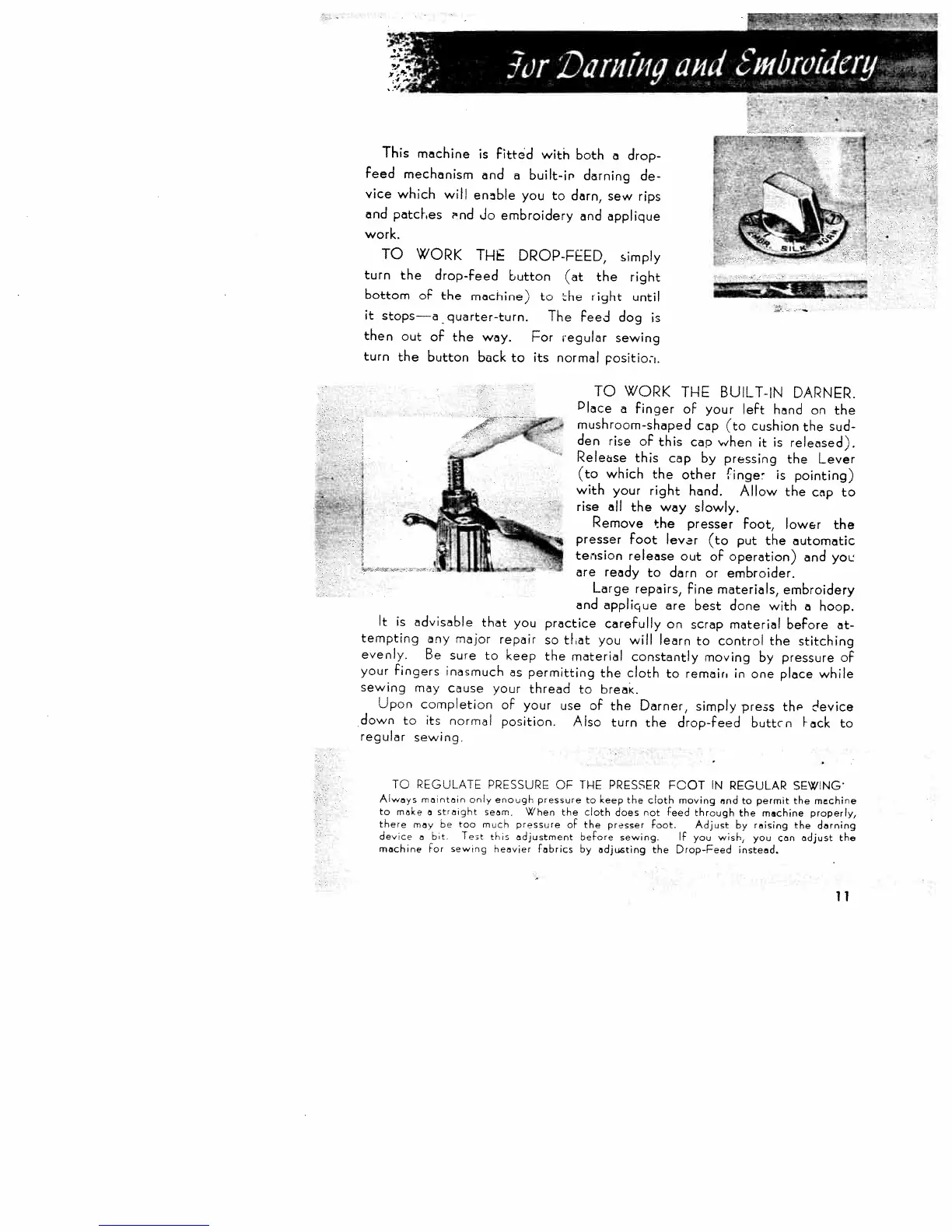Singer 1305 - For Darning and Embroidery; To Work the Drop-Feed; To Work the Built-In Darner