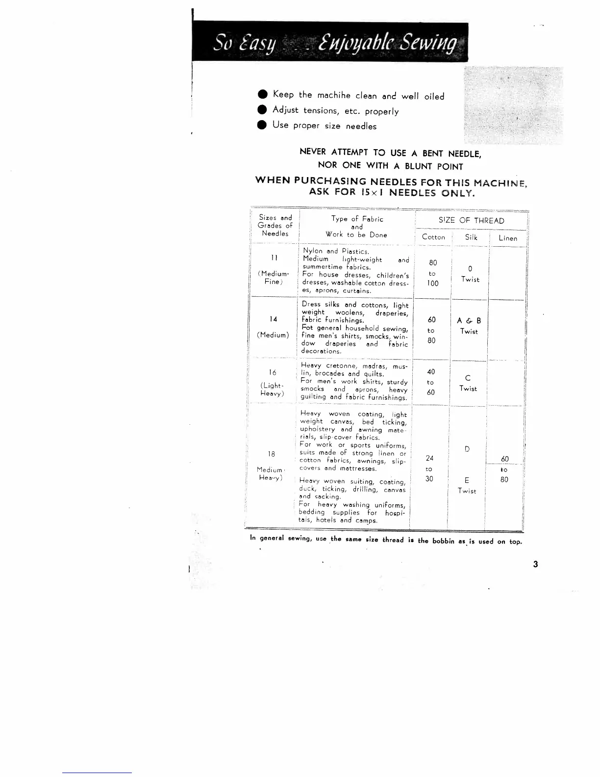 Singer 1305 - Needle and Thread Selection; Needle and Thread Compatibility