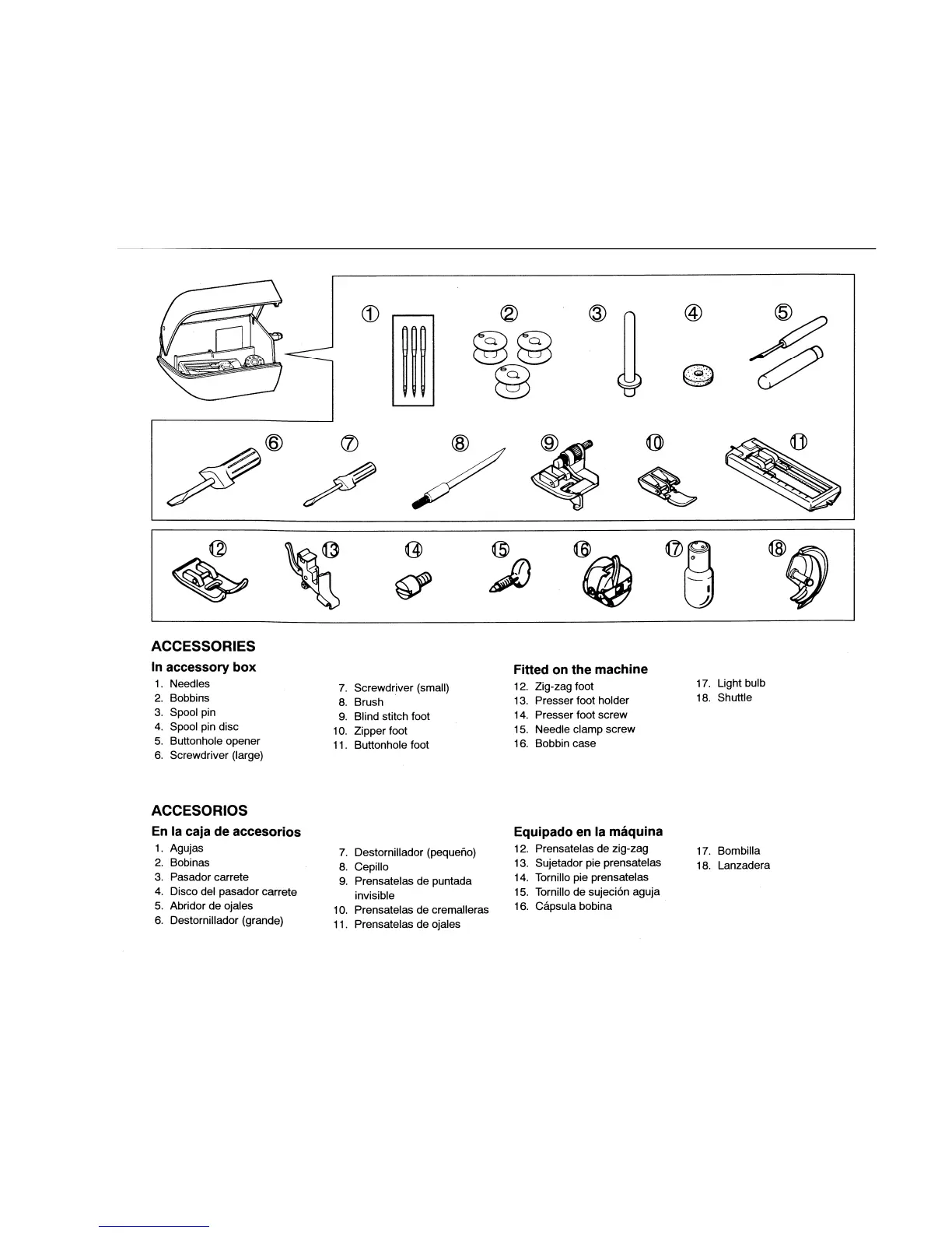 Singer 132 Featherweight - Accessories; Included and Fitted Accessories