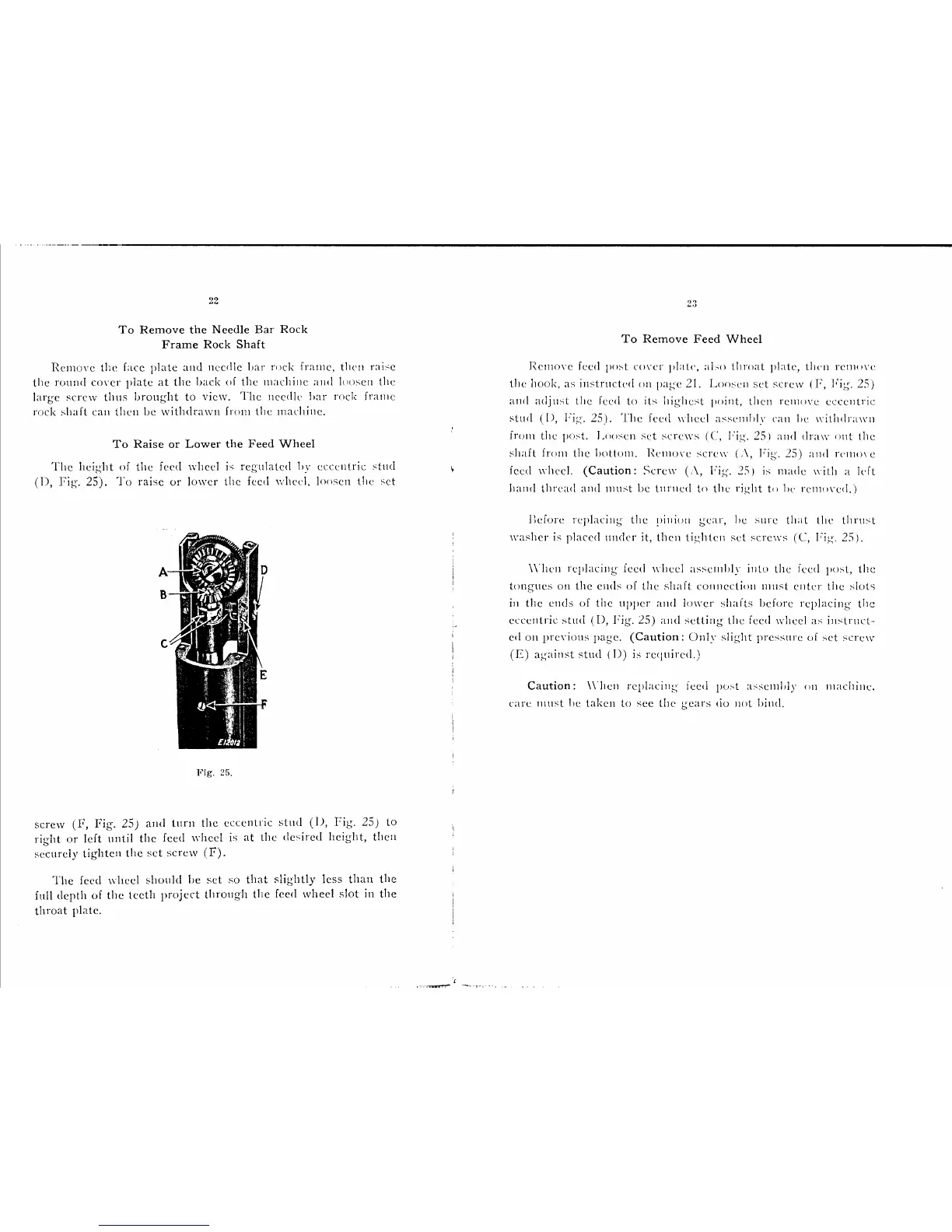 Singer 136W100 - Removing Needle Bar Rock Shaft; Adjusting Feed Wheel Height; Removing the Feed Wheel Assembly