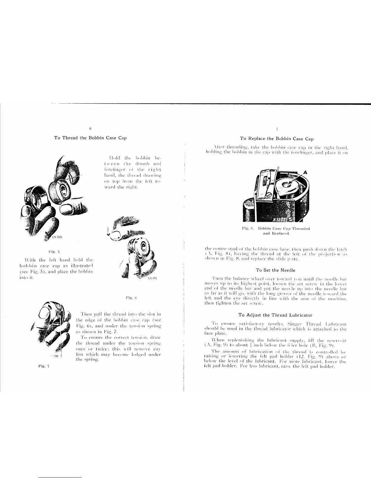Singer 136W110 - To Thread the Bobbin Case Cap; To Replace the Bobbin Case Cap; To Set the Needle; To Adjust the Thread Lubricator