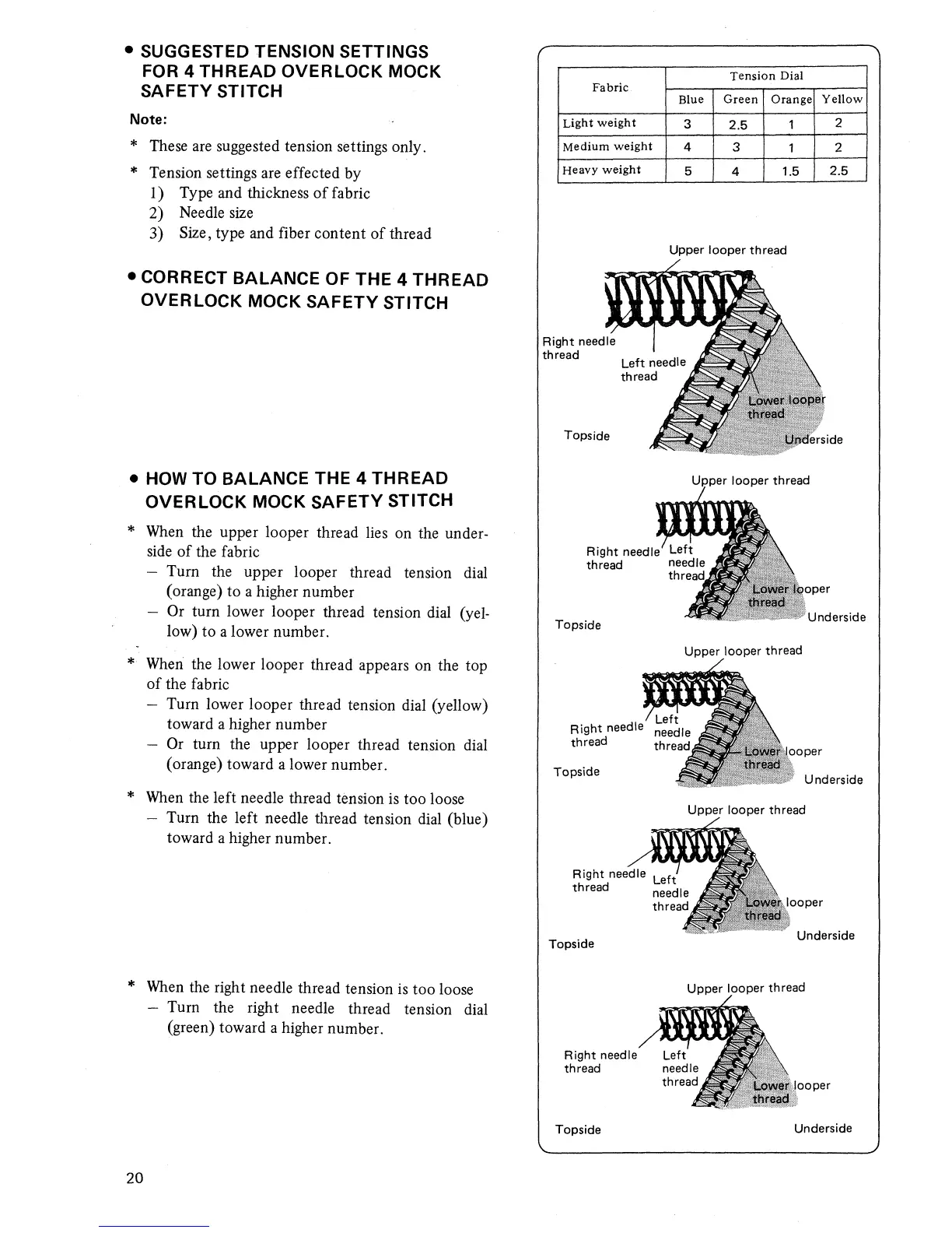 Singer 14 U444B - Suggested Tension Settings for 4 Thread Overlock Mock Safety Stitch