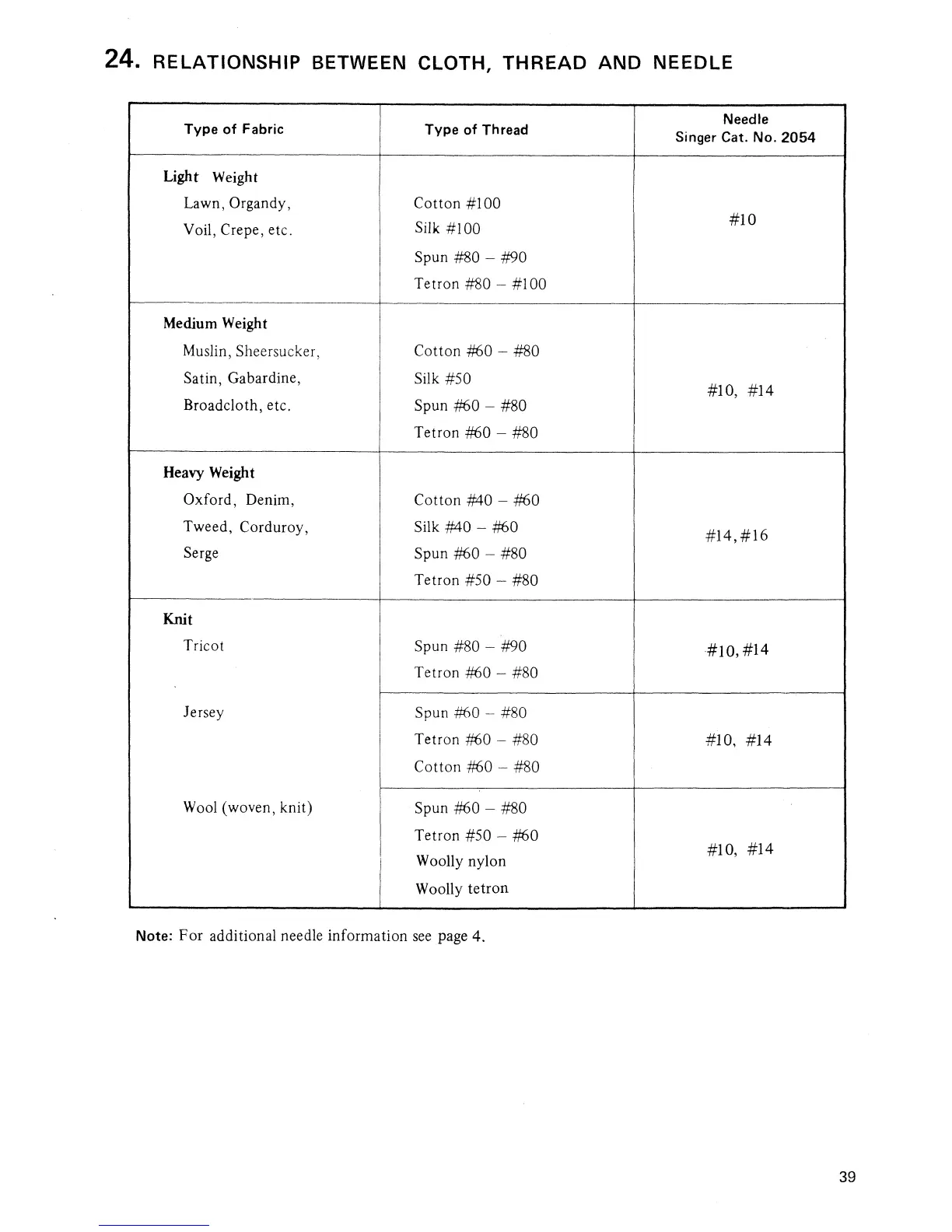 Singer 14 U444B - Relationship between Cloth, Thread and Needle