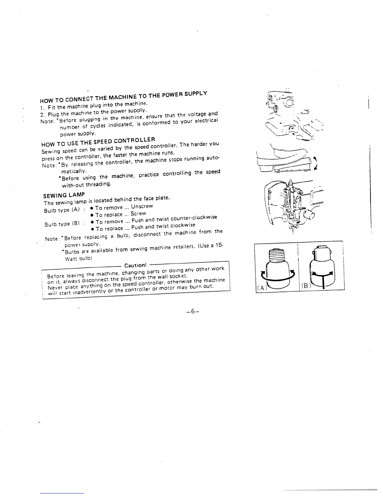 Singer 1410 - Connecting to Power Supply; Speed Controller and Sewing Lamp