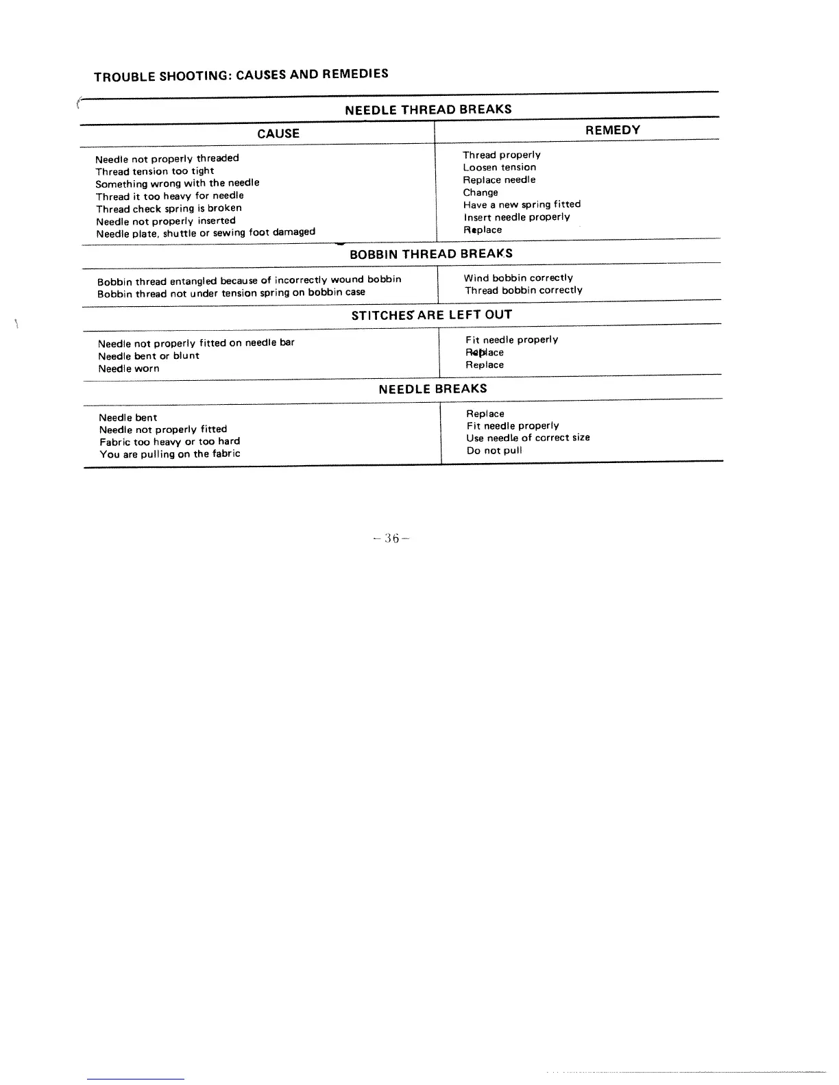 Singer 1411 - TROUBLESHOOTING GUIDE; Needle and Bobbin Thread Issues