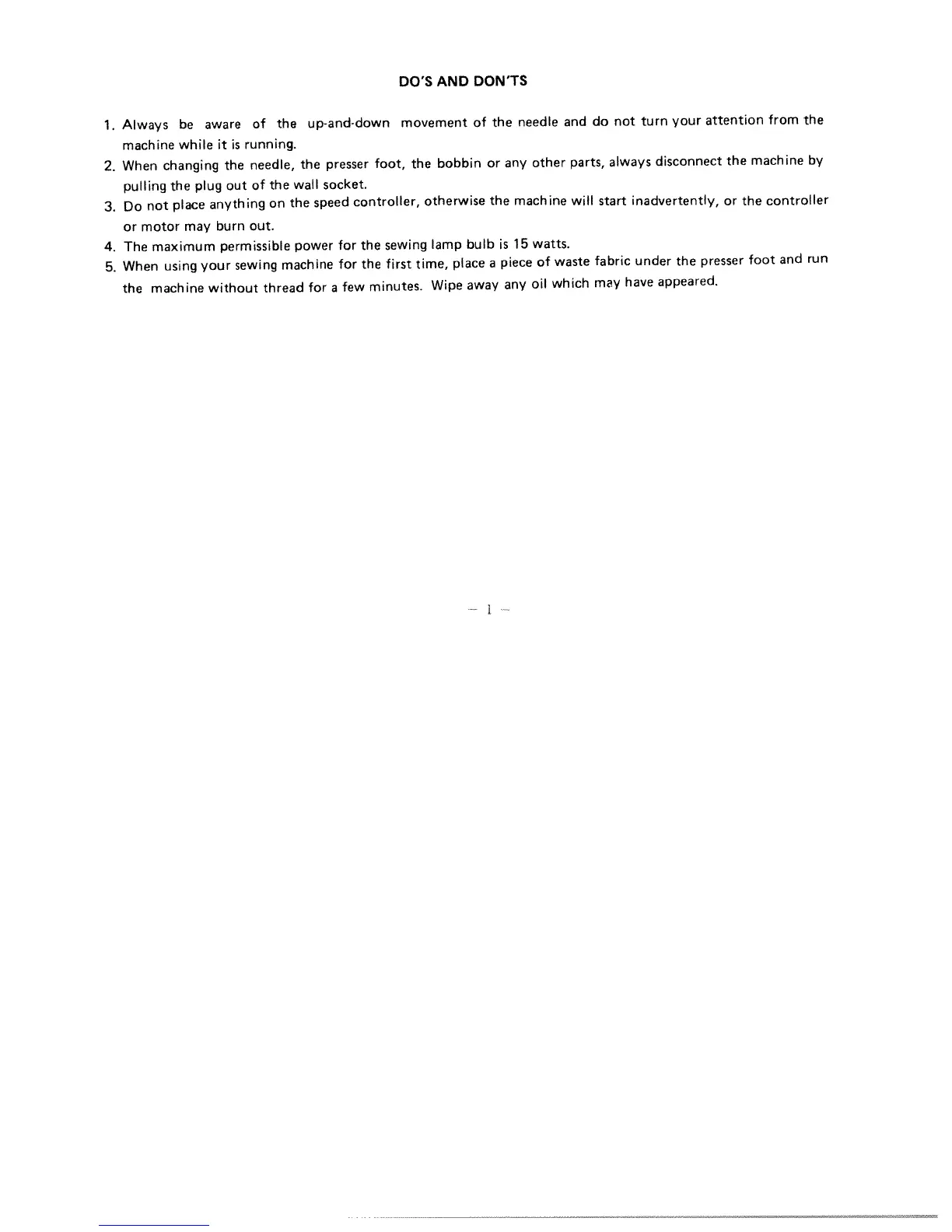 Singer 1422 - DOS AND DONTS; Operating Guidelines