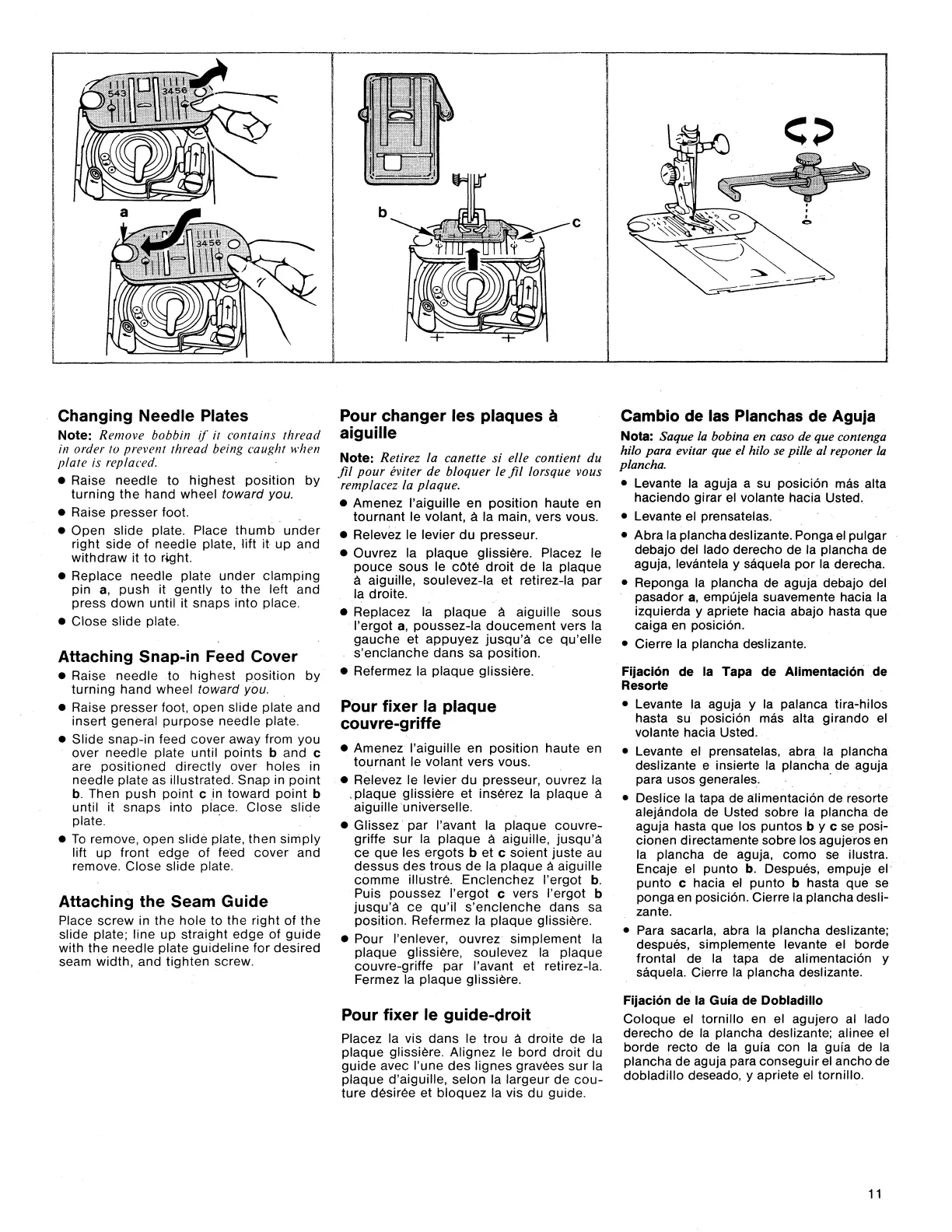 Singer 1425 - Changing Needle Plates; Attaching Snap-In Feed Cover; Attaching the Seam Guide