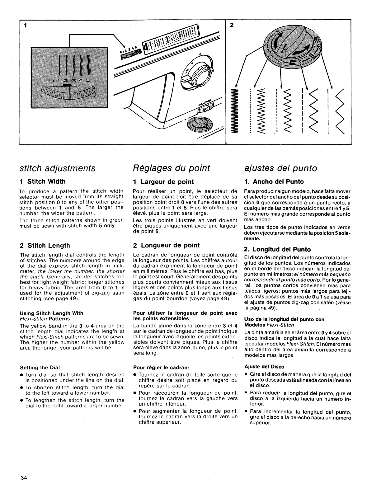 Singer 1425 - Stitch Adjustments; Stitch Width; Stitch Length; Using Stitch Length Width Flexi-Stitch Patterns