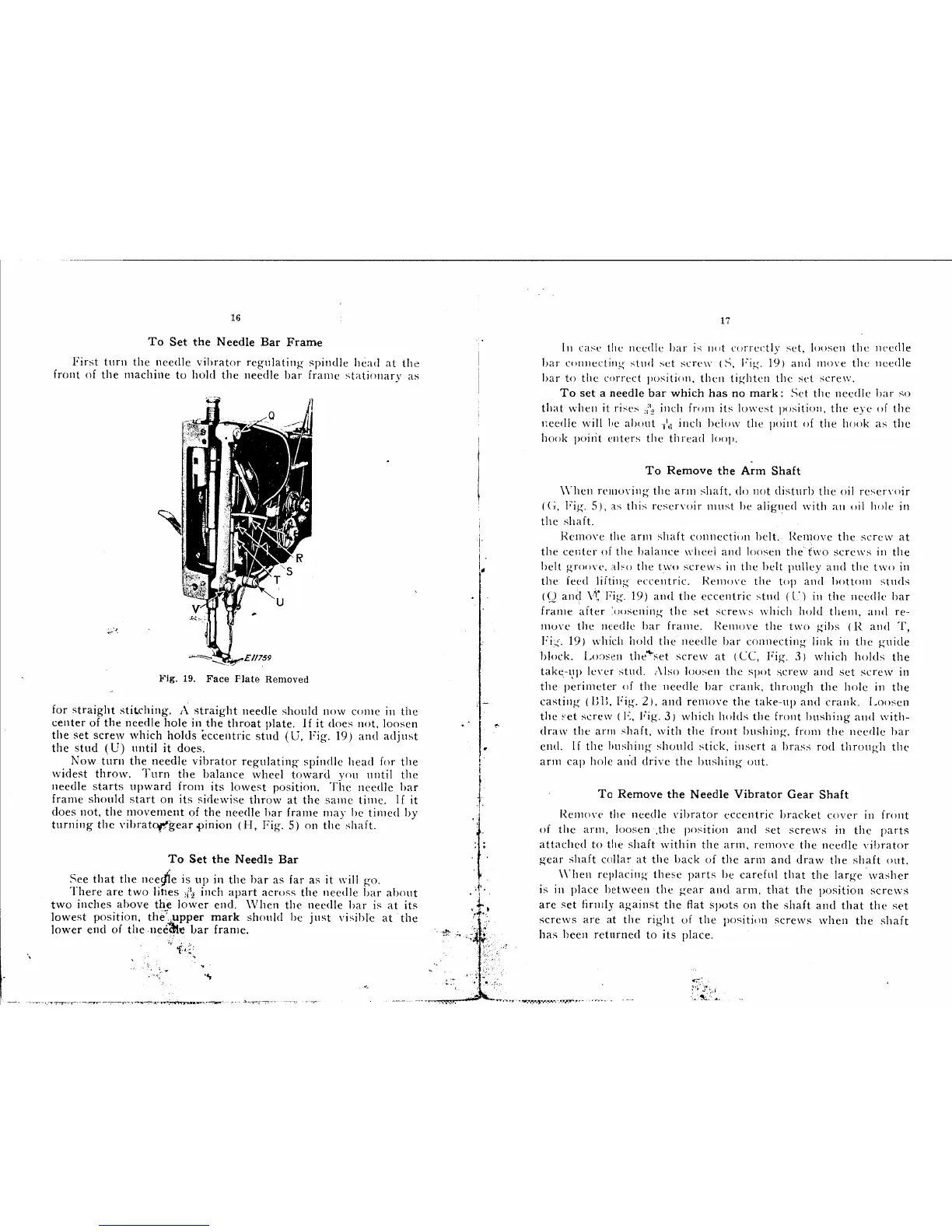 Singer 143W1 - Needle Bar Frame and Shafts