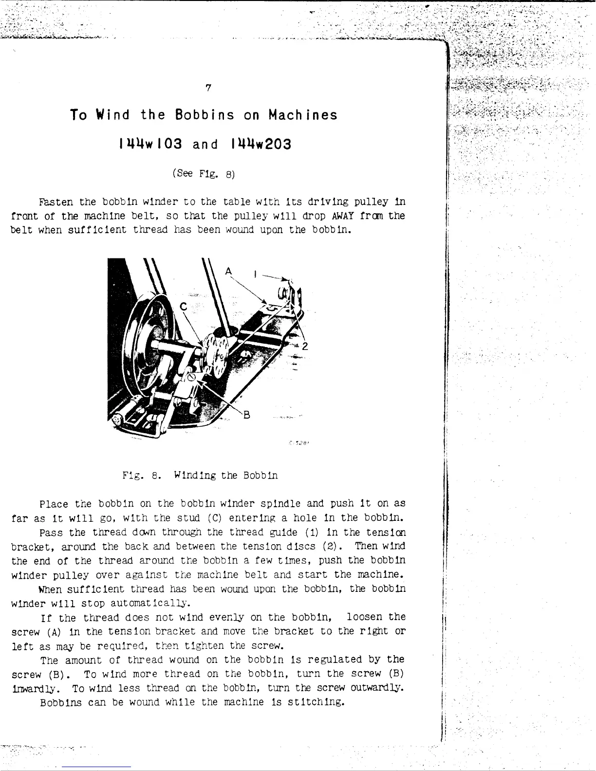 Singer 144W103 - To Wind the Bobbins; Winding the Bobbin