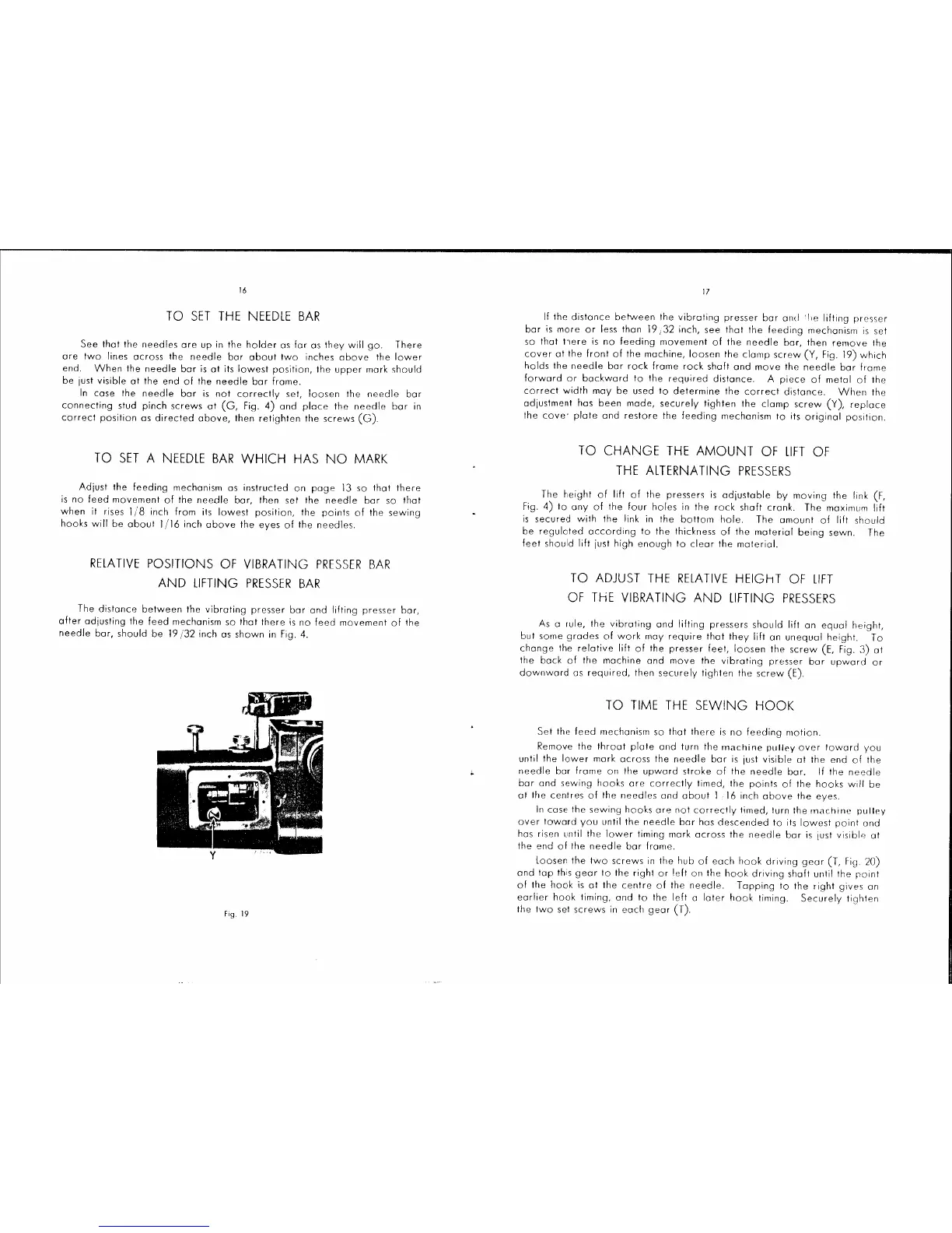 Singer 145W204 - Needle Bar Setting; Setting Needle Bar Without Marks; Presser Bar Relative Positions; Adjusting Presser Bar Alignment