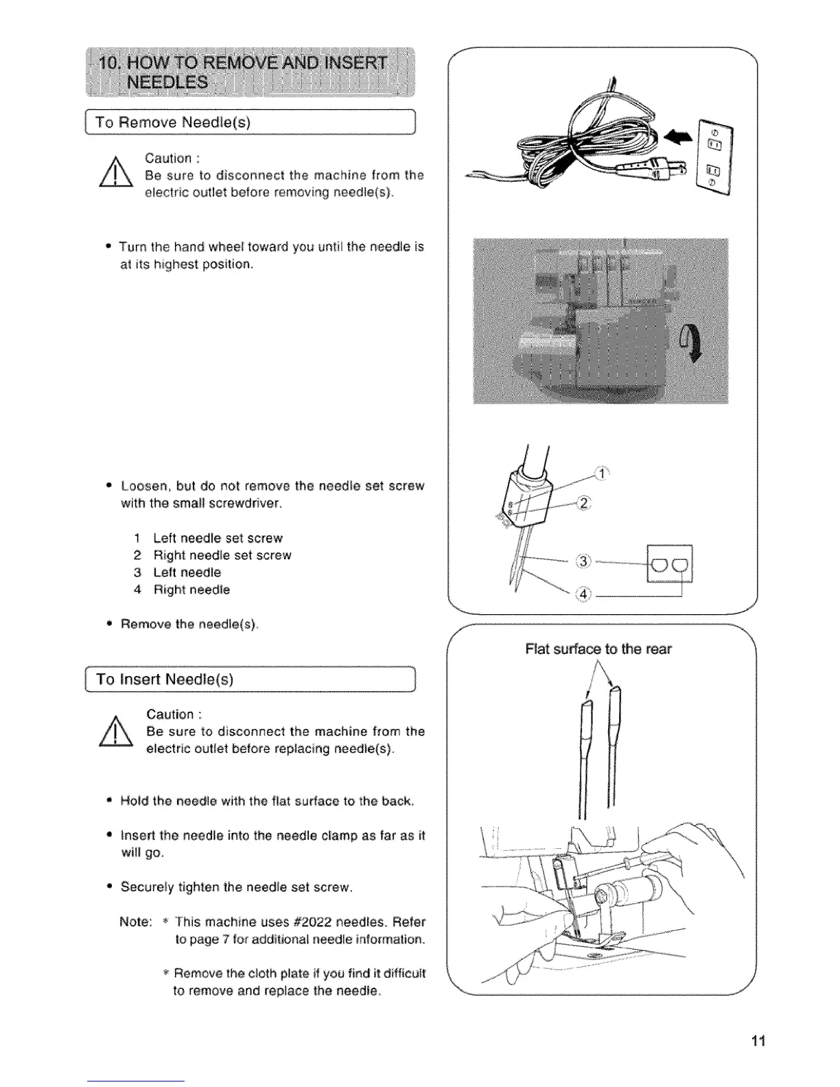 Note: _ This machine uses #2022 needles. Refer