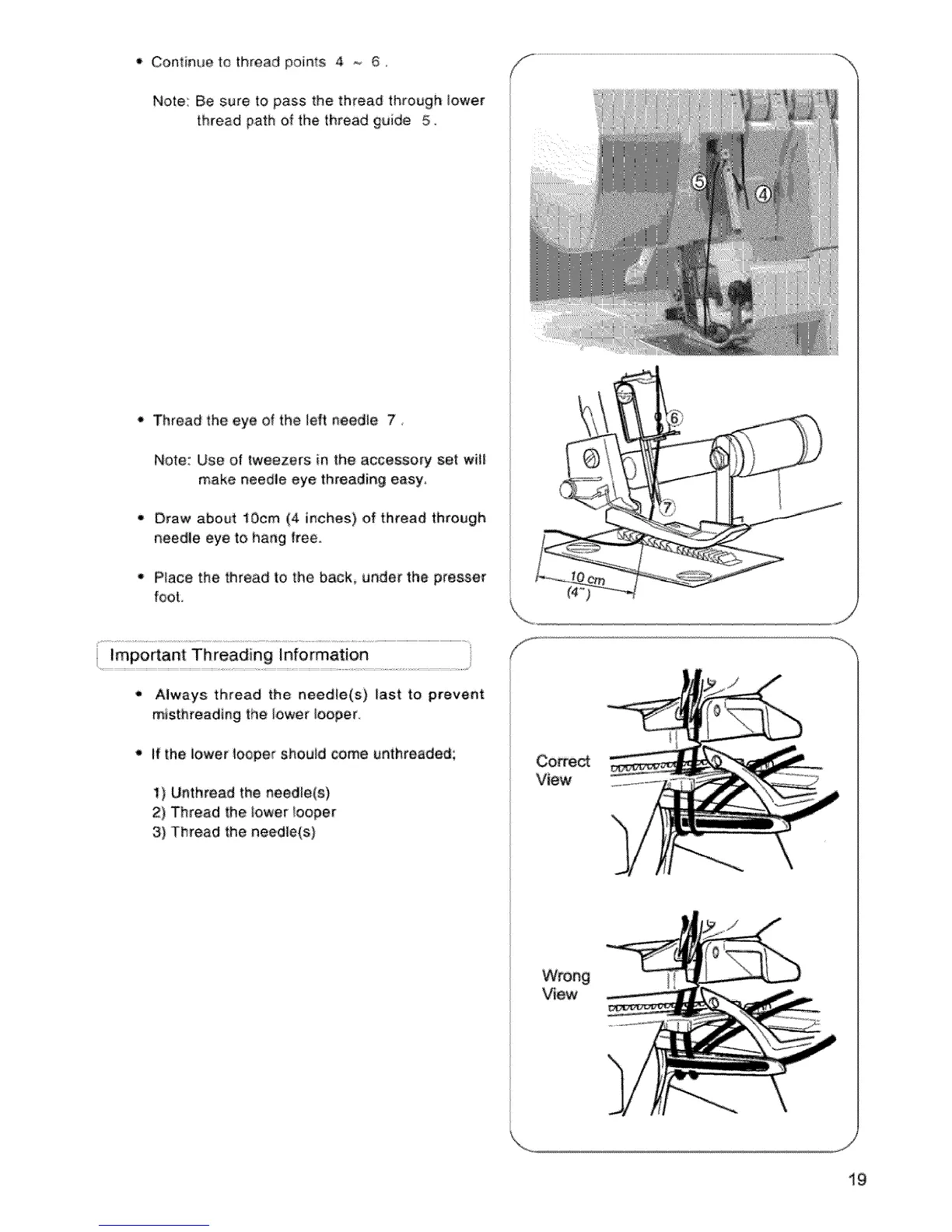• Place the thread to the back, under the presser