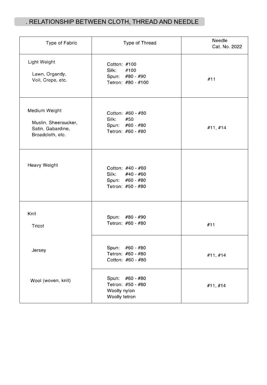 SINGER needle, Cat. No. 2022 is furnished with the machine. However, it is recommended that you select