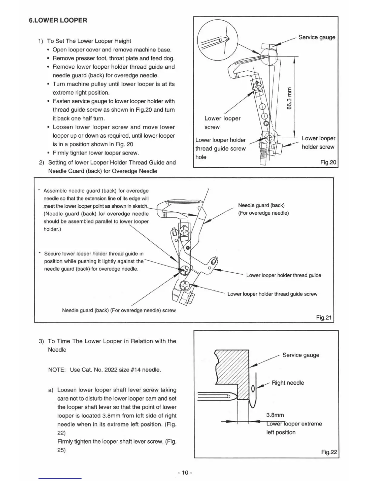 Singer 14SH 644 - Lower Looper Timing and Setting; Lower Looper Height Setting; Lower Looper Timing with Needle