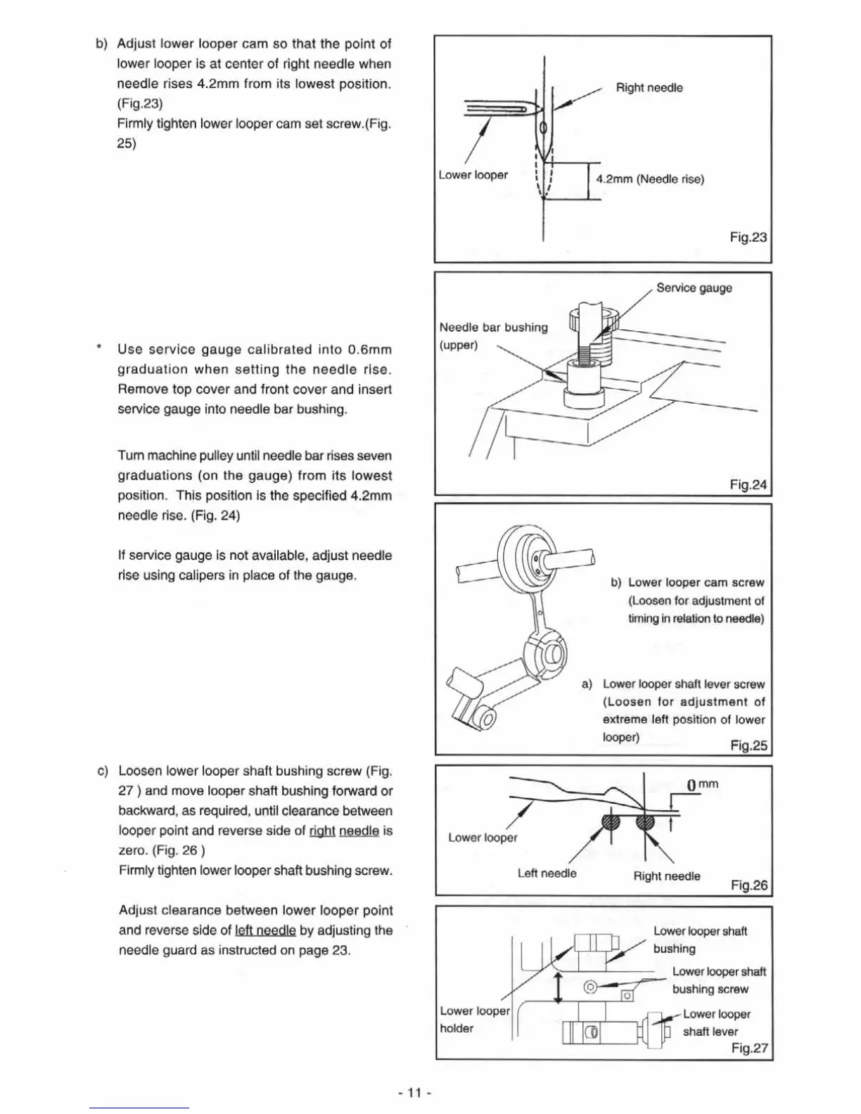 Singer 14SH 644 - Lower Looper Cam Timing Adjustment; Lower Looper Shaft Bushing Adjustment