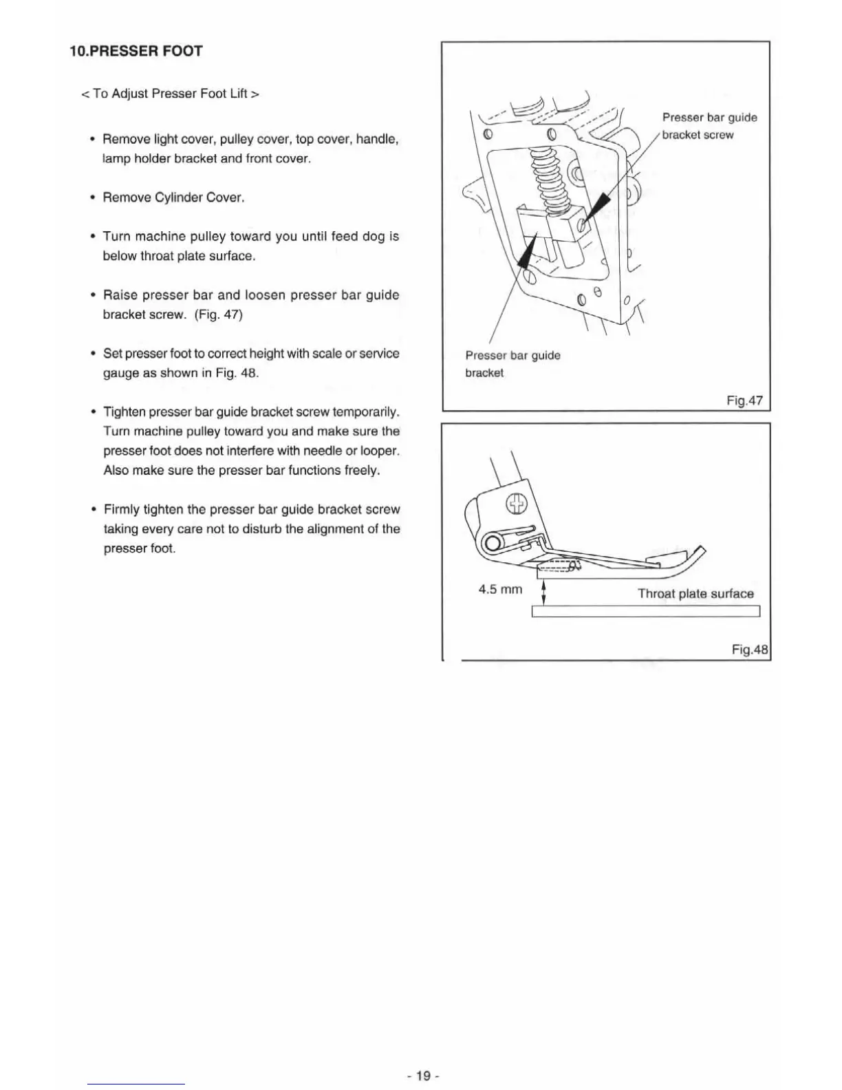 Singer 14SH 644 - Presser Foot Lift Adjustment; Presser Foot Lift Setting Procedure