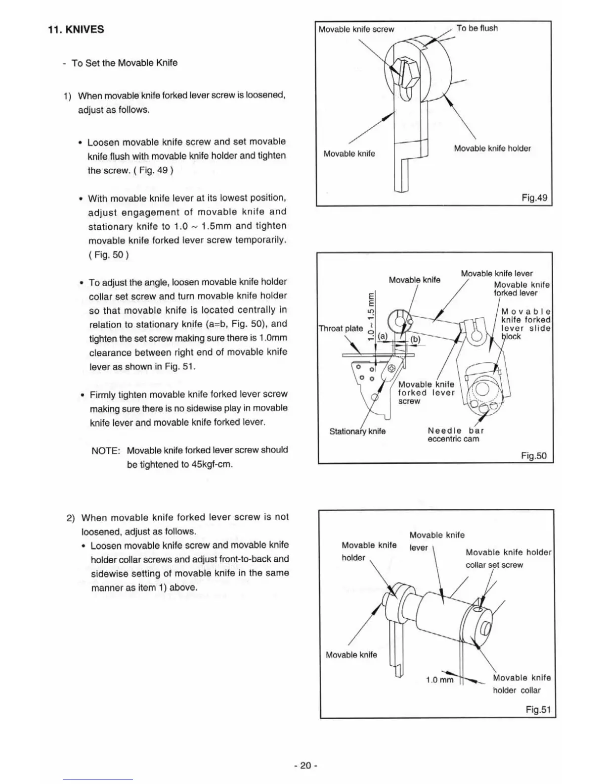 Singer 14SH 644 - Knife System Adjustments and Replacement; Movable Knife Setting and Adjustment