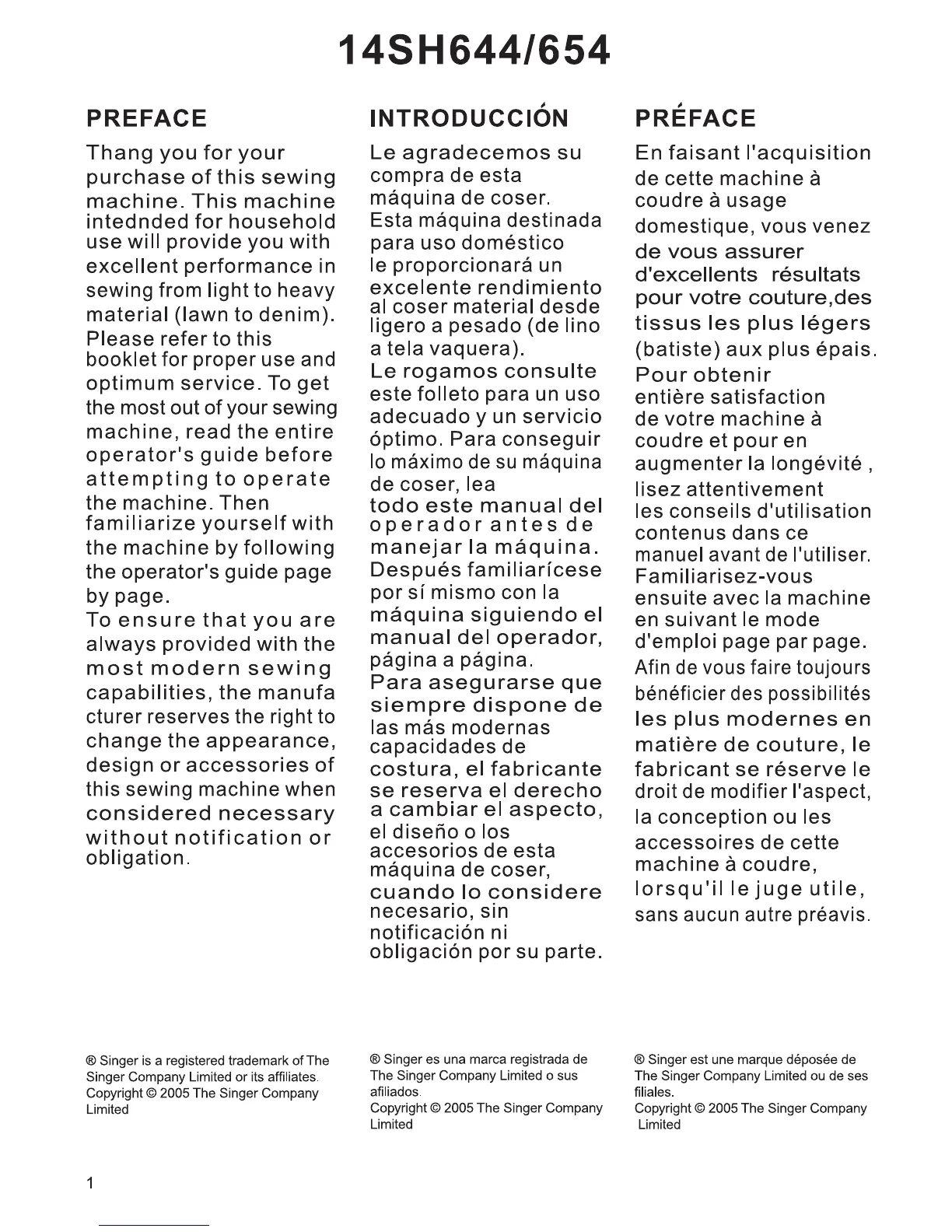 Singer 14SH644 Operator's gu