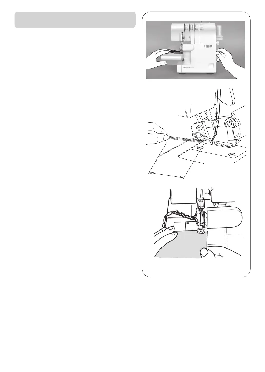• Hold the threads and apply a slight tension.