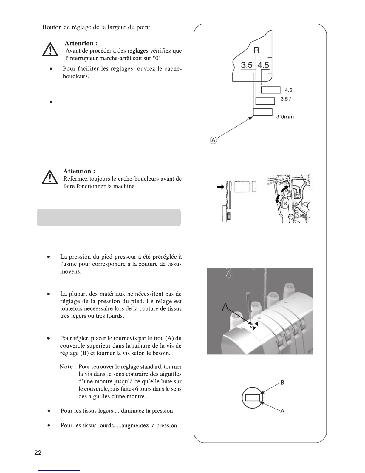 régler la largeur de la couture. Utiliser les mar-