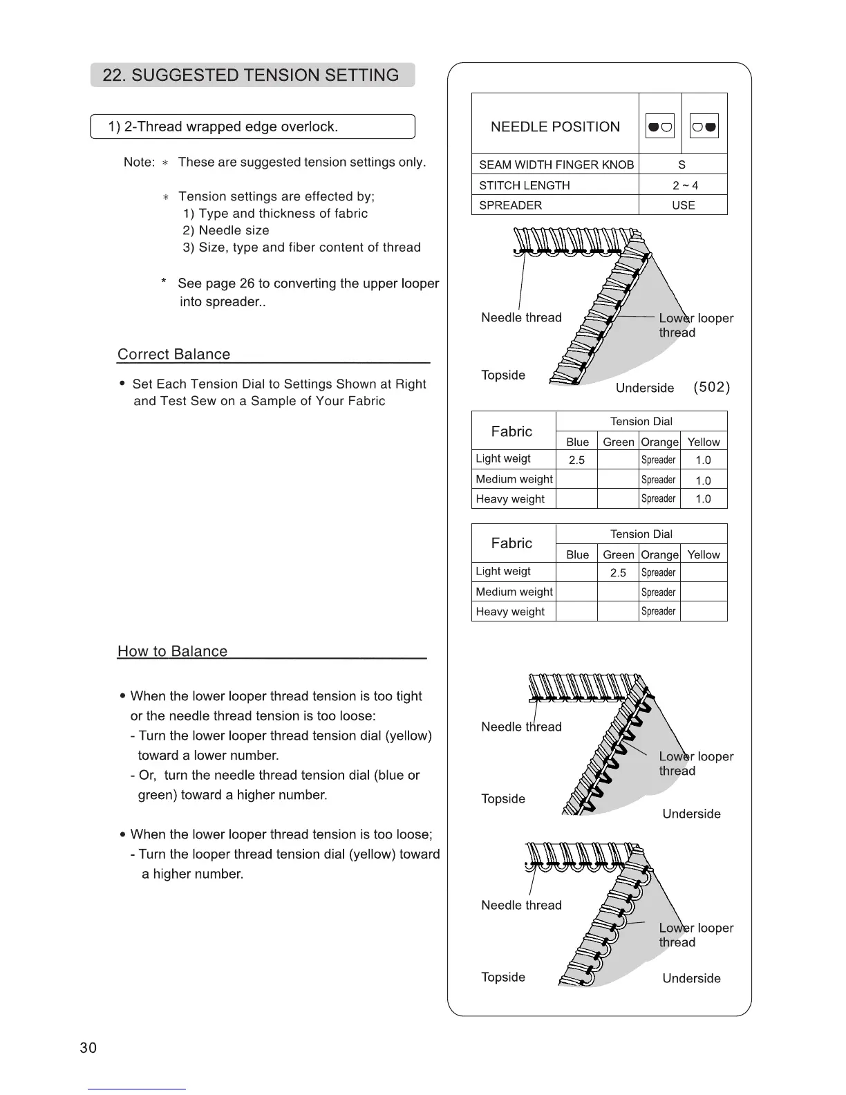 Singer 14SH764 - SUGGESTED TENSION SETTING; 2-Thread Wrapped Edge Overlock