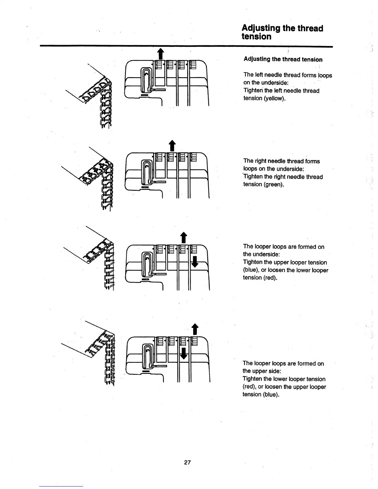 Singer 14T948DS - Adjusting Thread Tension; Left Needle Thread Tension Adjustment; Right Needle Thread Tension Adjustment; Looper Tension Adjustment (Underside)