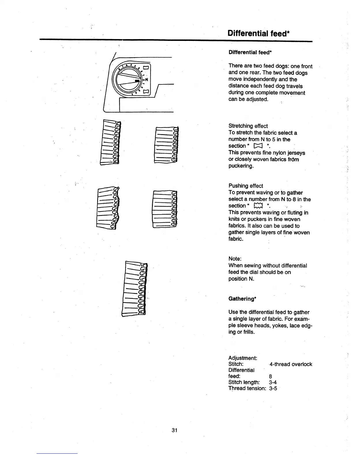 Singer 14T948DS - Differential Feed; Differential Feed Mechanism; Stretching Effect (N to 5); Gathering Effect (N to 8)