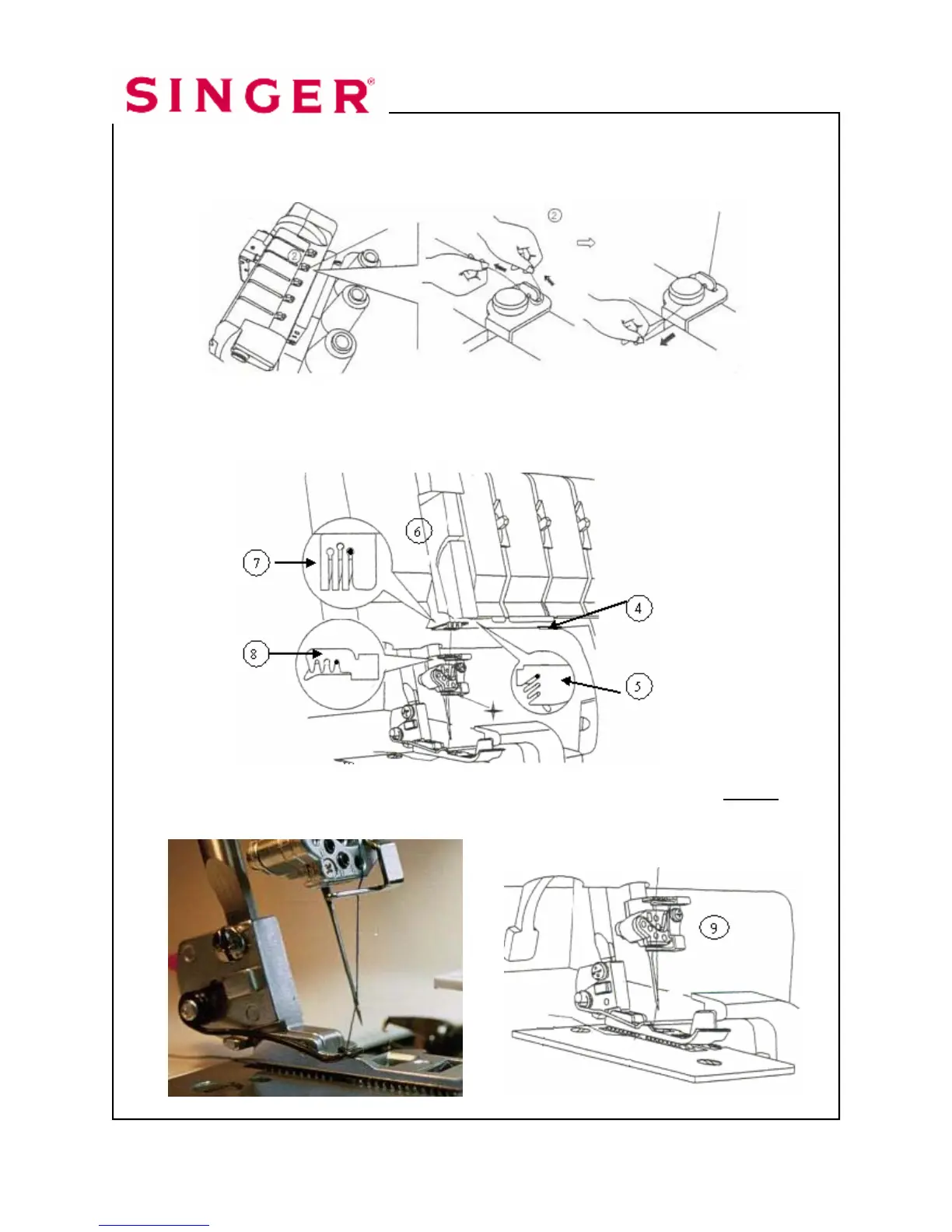 4. Continue to thread points 4-8. Slip the thread into the rear slot of the
