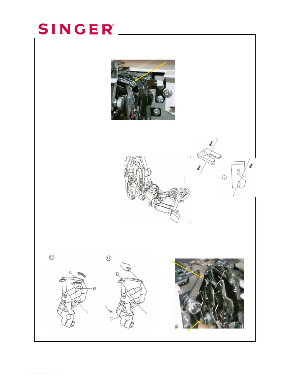 into place (D). Gently pull 5-6” of thread to the back of the machine.