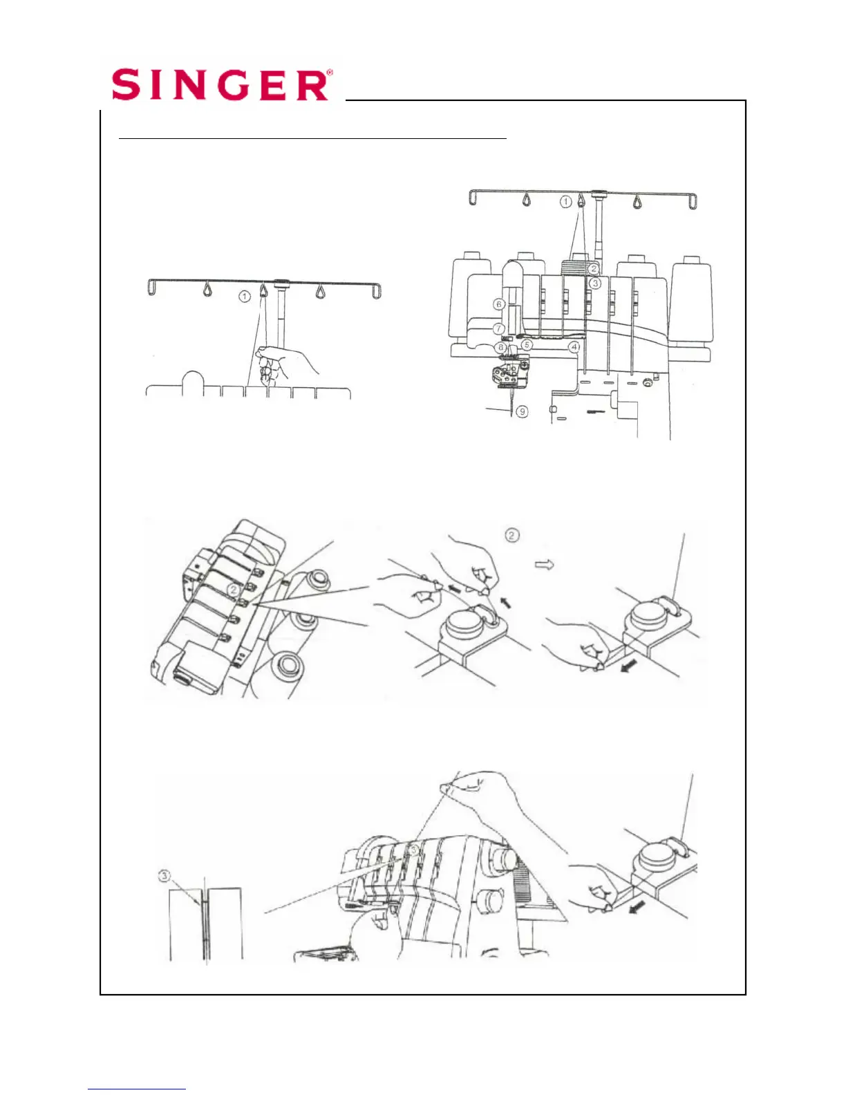3. Thread the top cover thread guide by pulling the thread towards the left until