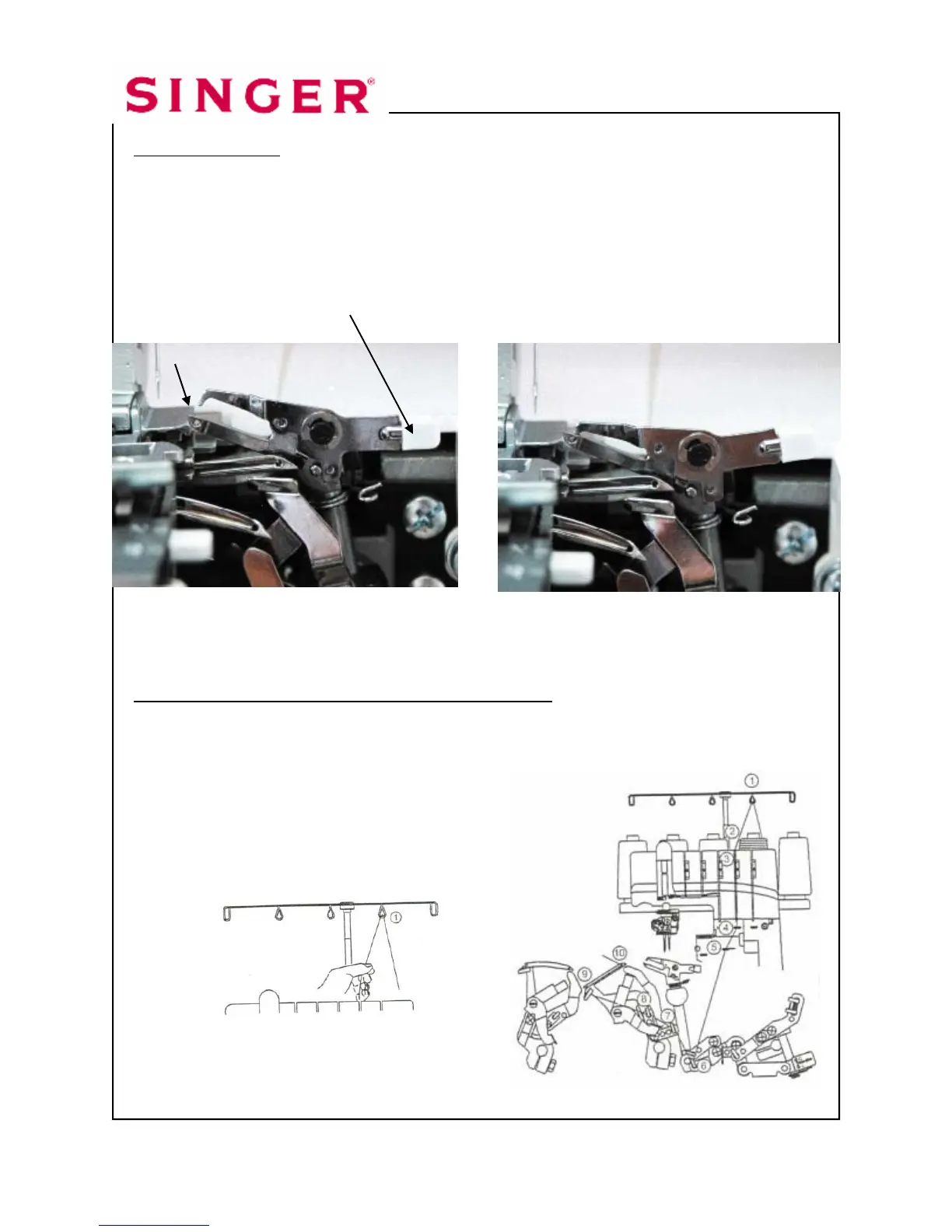 Engage Spreader. The Upper Looper has a hole for the thread on the top of the