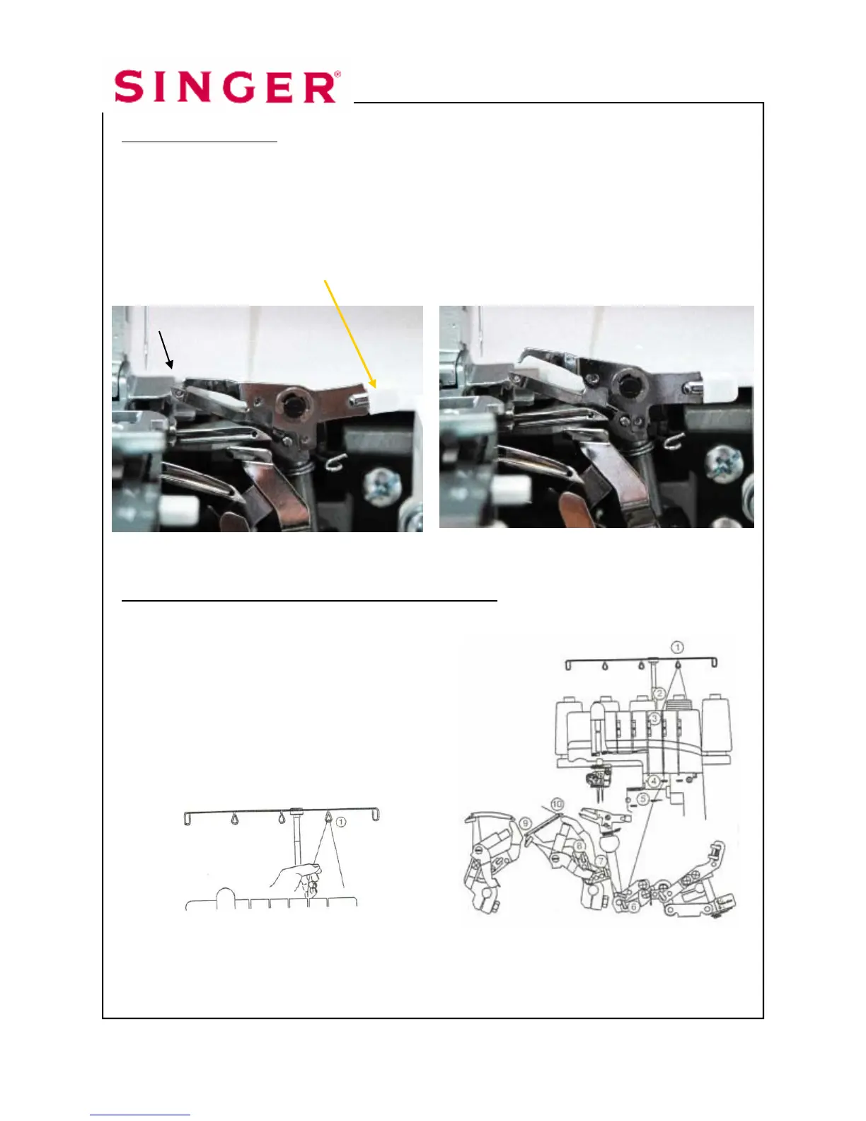 Disengage Spreader. The Upper Looper has a hole for the thread on the top of the