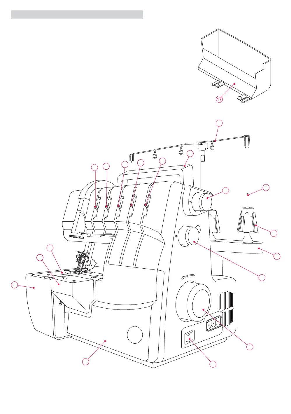7. Chain stitch looper thread tension fine tuning lever (brown)