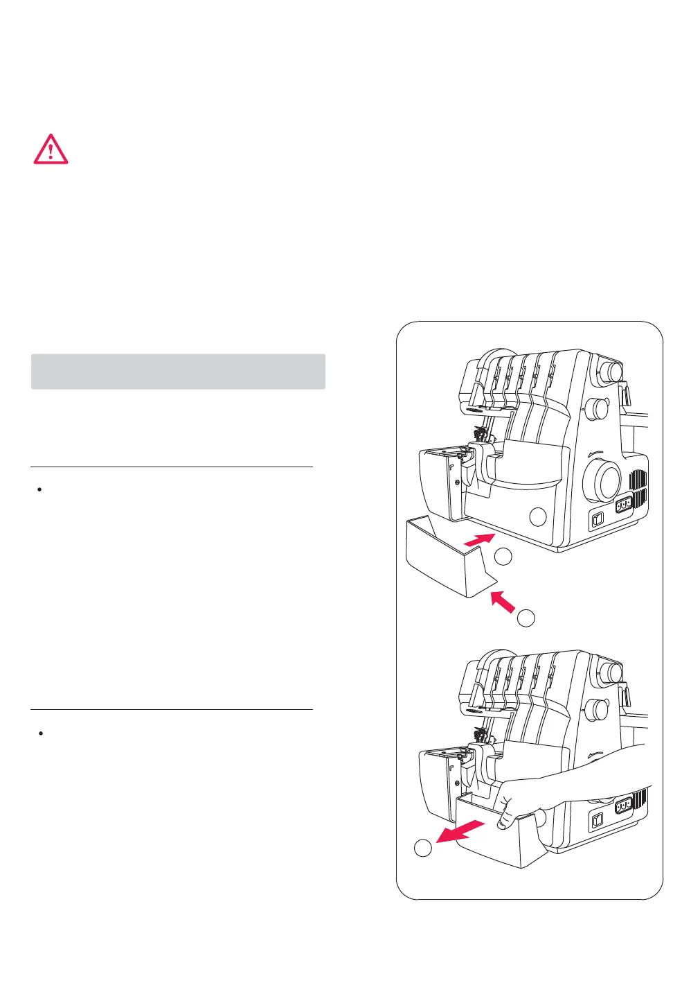 * Disconnect the power line plug from the electric outlet when changing needles, presser feet